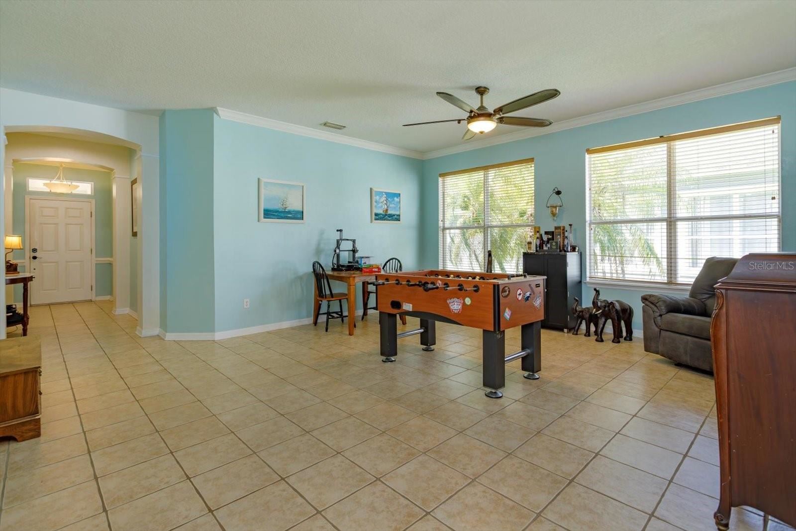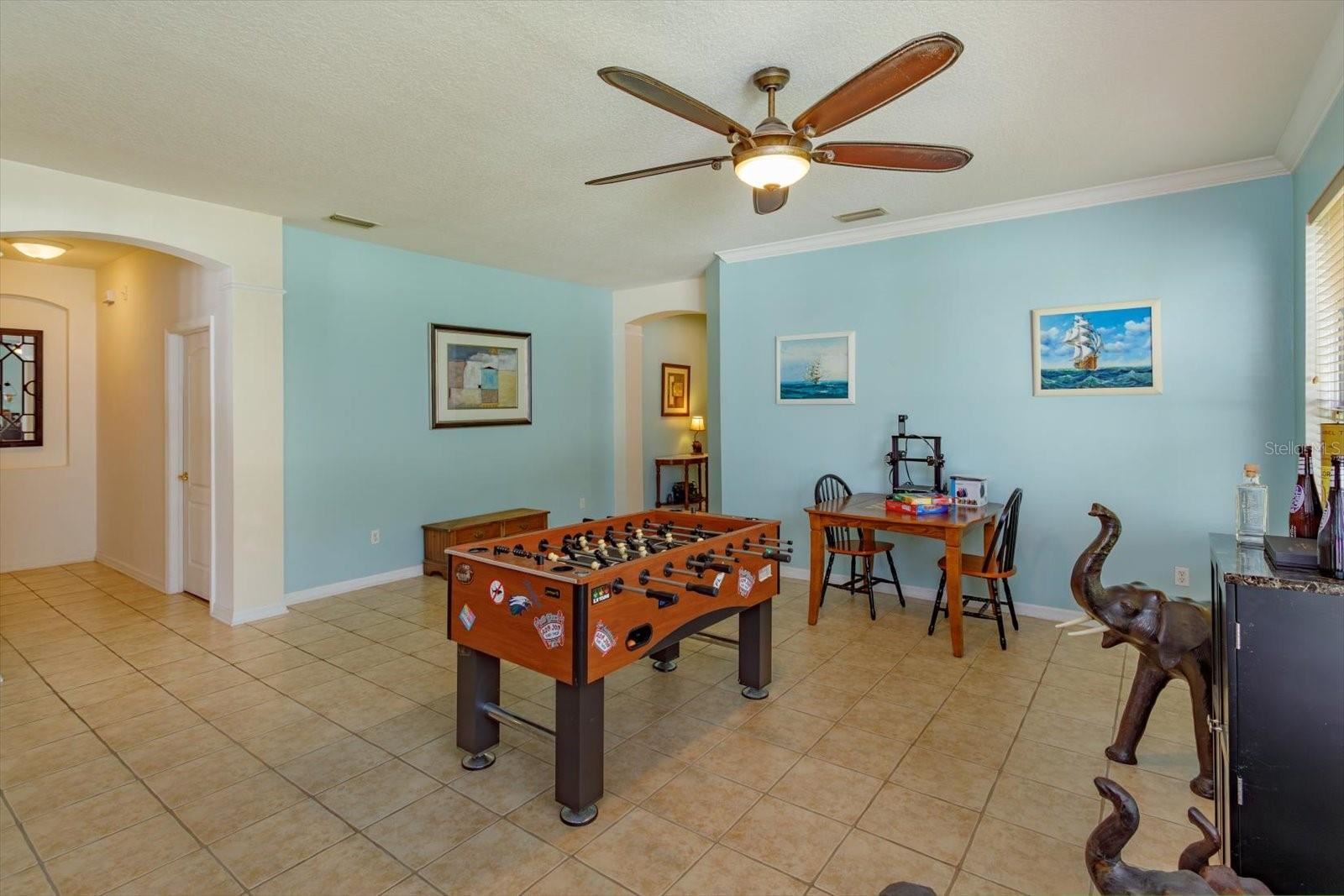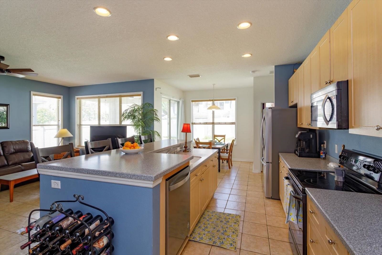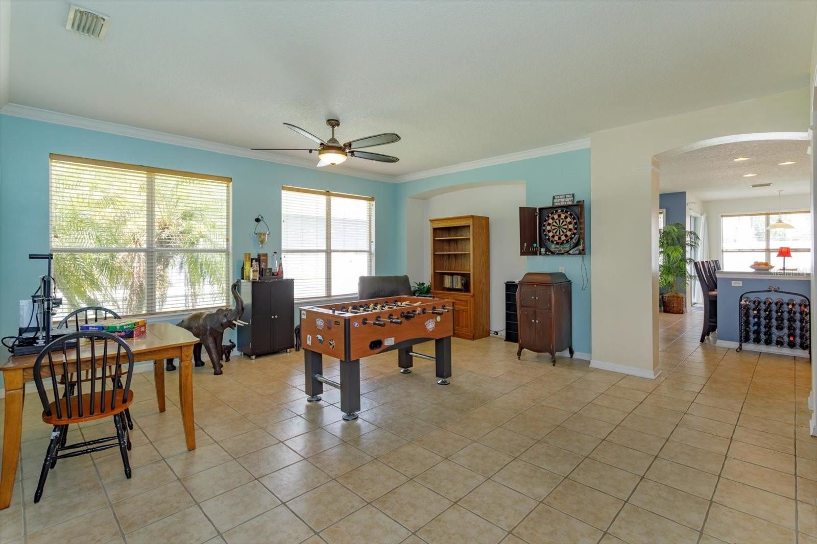Wow, what a wonderful home to return to everyday that has Beautiful Views of the Pine Tree Forest located across the street. Enjoy sipping lemonade on your Front Porch with this Unobstructed View of Nature! Once inside you will be greeted by the Vibrant Colors throughout and an Abundance of Large Windows making this home Light and Bright. The split bedroom feature is ideal. With 2 bedrooms and a shared bath towards the front of the home and the Primary Bedroom with En Suite, Walk In Closet and Bonus Room located at the back of the home. The Expansive Living Room/Dining Room area is currently being used as a large Gaming & Playroom. The Kitchen and Family Room is Spacious. This floorplan is Ideal for Entertaining! There is an Abundance of Counterspace in the Kitchen, Lots of 42 inch Cabinetry, Storage Galore including a Large Pantry, and Stainless Steel appliances. Perfect for the chef in the family to make those gourmet meals! In addition, the kitchen has an additional dinette area that overlooks the Covered Patio and Expansive Backyard. This floorplan is like no other with the Primary Bedroom with Bonus Room that can be used an a home Office or a Nursery – whatever fits your needs! Finally, the Roof was installed in 2019, there is a NEW Hot Water Heater, 2025, and the home has SOLAR that provides extremely LOW Utility Bills averaging $55/month and Termite Bond transferrable with Terminix. Lastly, the Lakes of Windermere is an amazing community with its Meandering Tree Lines sidewalks, Tennis Courts, Basketball Court, Gazebo, Playground, Community Pool and so much more. Windermere and this community is very close to the major attractions in central Florida including Disney, Universal and Sea World. This home, community, and area Welcomes You HOME!