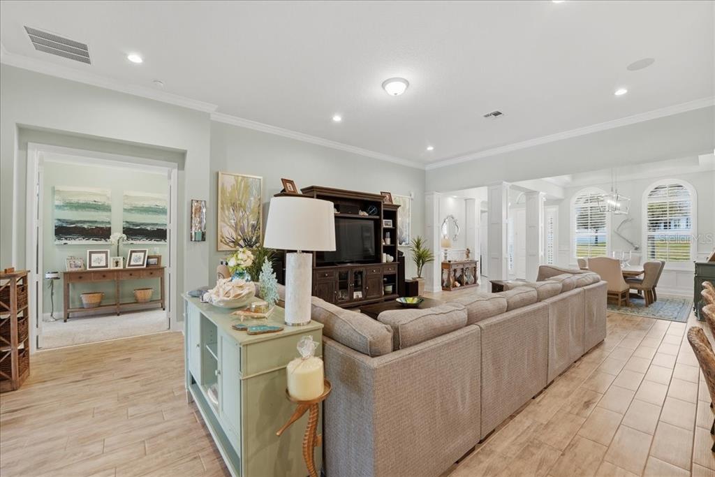 Fully remodeled Oviedo pool home with a 3-car garage, luxury finishes, and no rear neighbors in Seminole County’s top-rated school district. Welcome to 688 Fosters Grove Loop, a stunning fully updated pool home in the heart of Oviedo offering the perfect blend of luxury, privacy, and thoughtful design. With no rear neighbors and serene views overlooking a dry retention area, this meticulously maintained residence provides both beauty and tranquility. This rare one-story floor plan features 4 bedrooms plus a dedicated office and a 3-car garage, designed with a highly desirable split-bedroom layout that offers both privacy and functionality. The open-concept living space showcases dramatic tray ceilings, elegant custom millwork and wainscoting, and a seamless flow between the chef’s kitchen and spacious family room, creating the ideal setting for everyday living and entertaining. The luxurious primary suite is truly a retreat, featuring two custom walk-in closets and a beautifully appointed spa-style bathroom. Three additional bedrooms are generously sized and include fully remodeled bathrooms, including a stylish Jack-and-Jill design. Step outside to your private outdoor oasis. The expansive screened-in lanai is perfect for hosting game days or relaxing evenings while overlooking the saltwater pool with sun shelf, upgraded pool pump, and expanded paver deck. With no direct rear neighbors and lush landscaping, the backyard provides both privacy and peaceful views. This home has been extensively upgraded and lovingly maintained, including plantation shutters throughout, recessed lighting, remodeled laundry room, custom closet systems, upgraded induction range with pot filler, whole-house water filtration and softener, updated exterior paint, new bedroom carpeting, upgraded irrigation, and beautifully refreshed landscaping. Located in Seminole County’s top-rated A-school district and just minutes from shopping, dining, parks, and major commuter routes, this home offers the perfect combination of convenience and lifestyle. Homes with this level of updates, layout, and privacy rarely come available. Don’t miss your opportunity to make this exceptional Oviedo home yours.