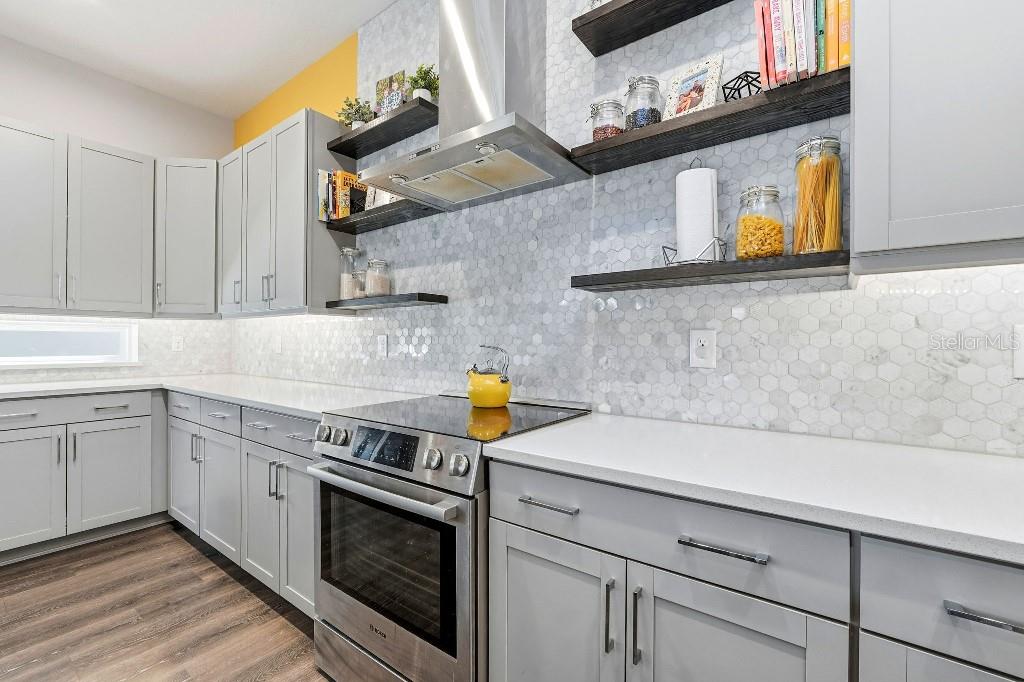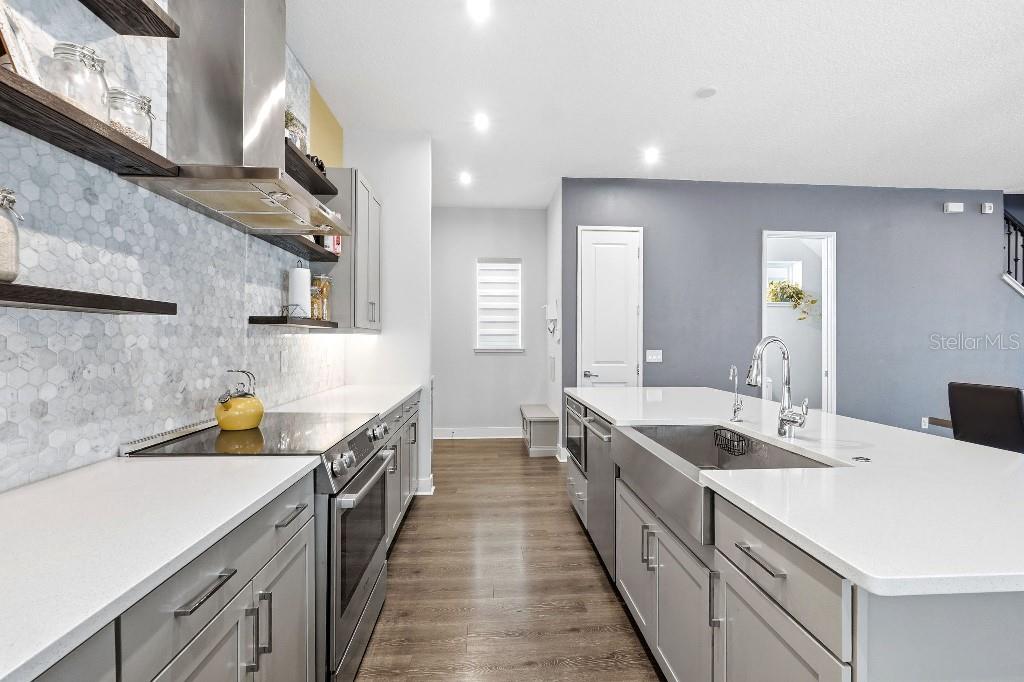 From the manicured front yard and travertine entry steps to the breezeway/courtyard design, this home was made for flexible living and effortless entertaining. Inside, enjoy quartz countertops, a stylish LED-lit kitchen backdrop, and laminate flooring throughout (no carpet) for a clean, modern look. One of the best features: direct walking access and a park view/entry into Merit Park, so you enjoy the open green space without car traffic at your front door.