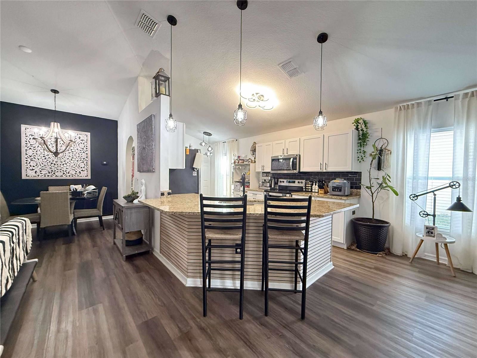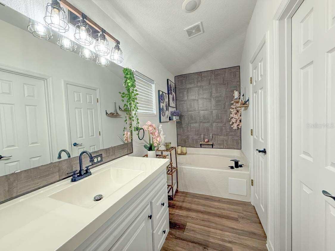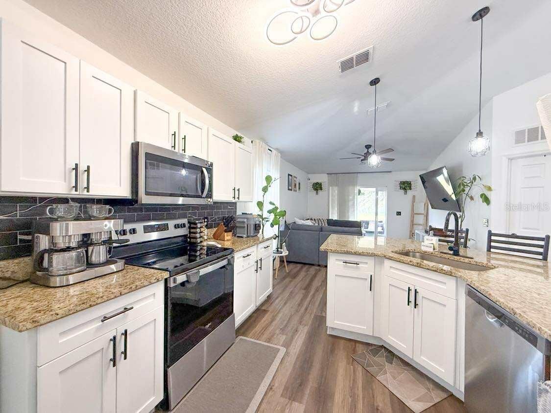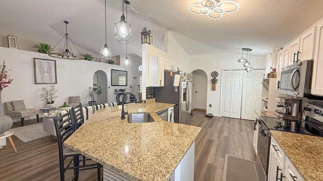 Home for sale in Haines City!! Beautifully updated 3-bedroom, 2-bath property located in the desirable Stonewood Crossings community. From the moment you arrive, you’ll be greeted by the charm of a stately oak tree. Step inside and discover a bright, welcoming interior that has been recently refreshed with tasteful décor and modern finishes throughout. Luxury vinyl flooring in common areas. The kitchen is a true highlight, offering refinished shaker-style cabinets, sleek granite countertops, and stainless-steel appliances. The primary suite features a walk-in closet and a private ensuite bath, while both bathrooms have been renovated with new vanities, updated lighting, and stylish details. Enjoy relaxing or entertaining in the screened-in back porch that overlooks a private fenced backyard, enhanced with the natural shade of the oak tree. This outdoor space is perfect for weekend barbecues or quiet evenings. The home also features a newer HVAC system for added comfort and efficiency. Just minutes away from Highway 27, Posner Park and I-4, you’ll have quick access to shopping, dining, and entertainment. This home is the perfect combination of comfort, style, and convenience. Schedule your private showing today