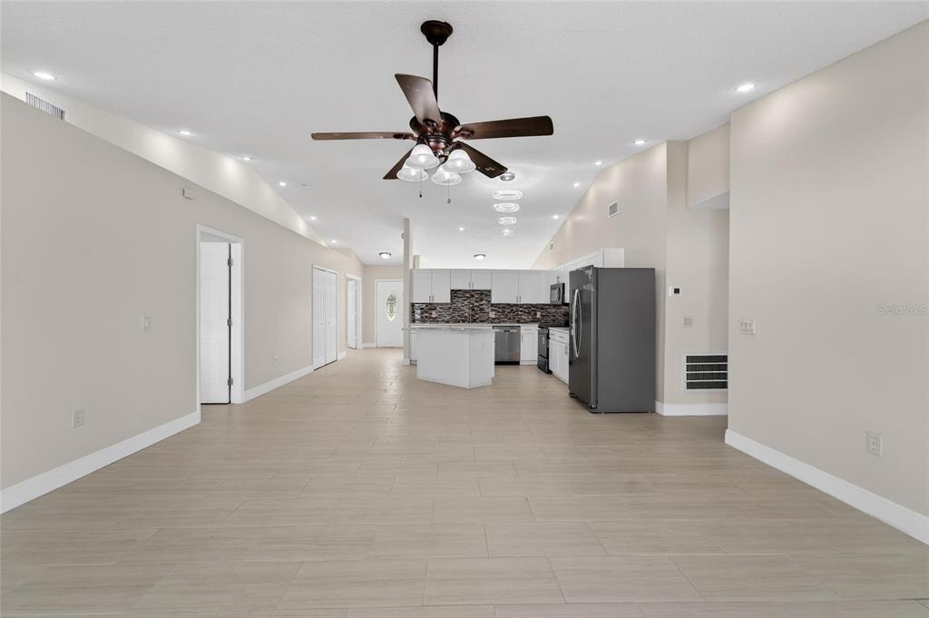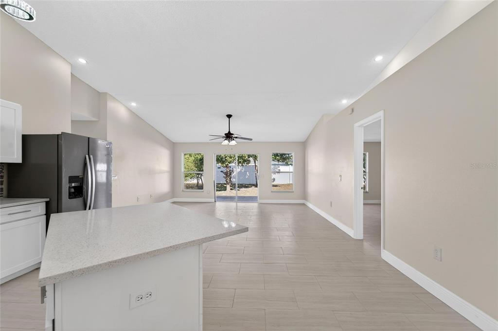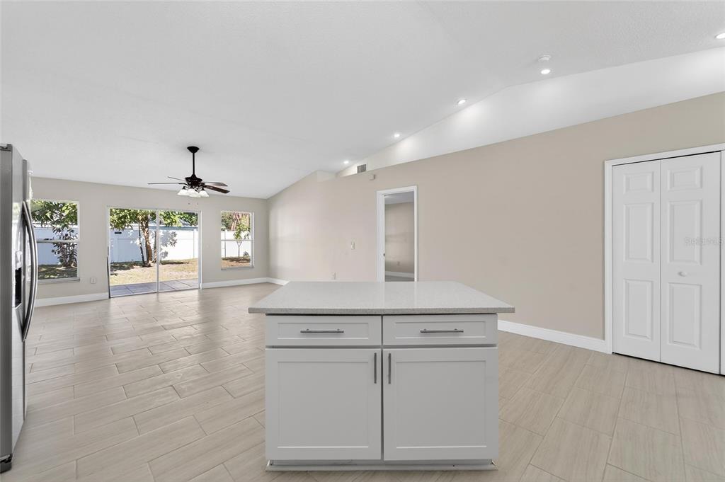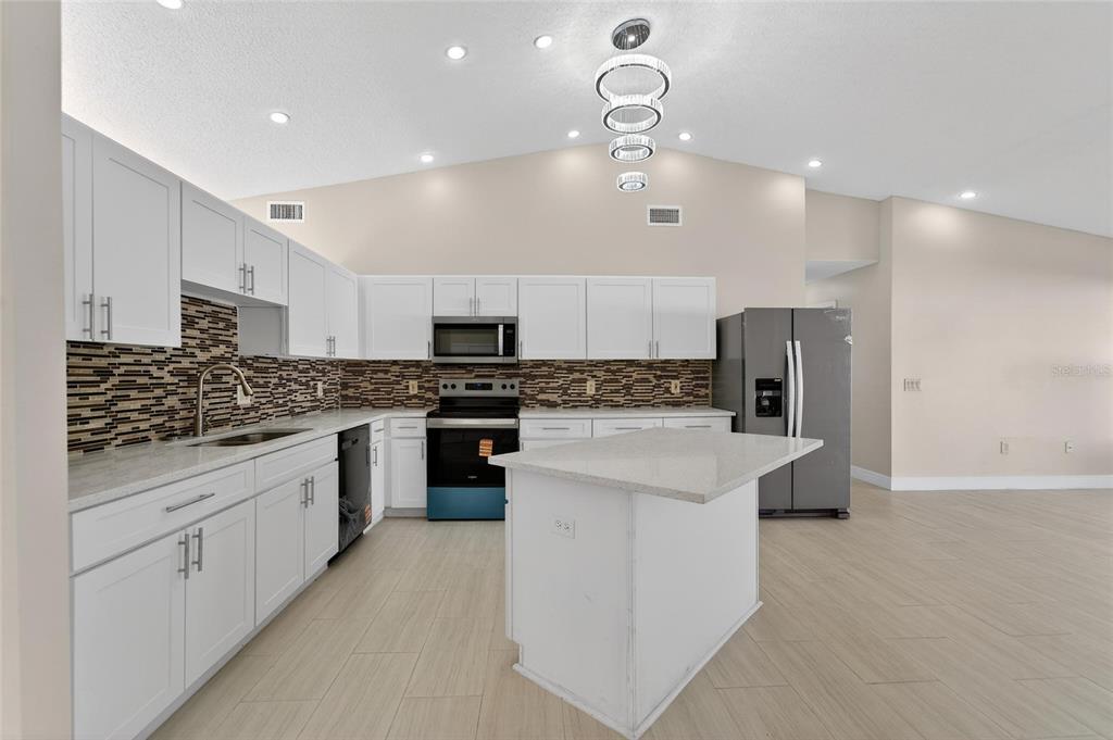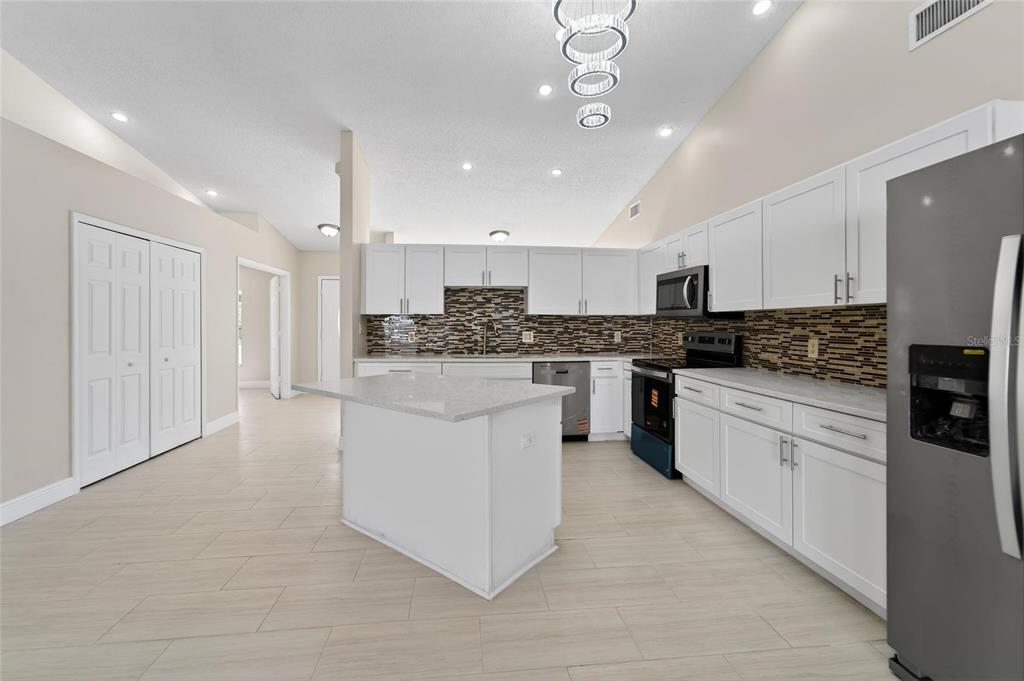 Experience refined living in this beautifully renovated 4-bedroom, 2-bath home located in the desirable Poinciana Villages community of Kissimmee. From the moment you enter, you’re greeted by soaring ceilings, fresh interior paint, and new tile flooring throughout, creating a bright, cohesive, and modern feel. The open, split-bedroom floor plan perfectly balances elegance, comfort, and privacy. The designer kitchen is a true showpiece, boasting brand-new stainless-steel appliances, sleek quartz countertops, and custom all-wood cabinetry with abundant storage—ideal for both entertaining and everyday living. A dedicated formal dining room offers the perfect setting for intimate dinners or festive gatherings. The spacious primary suite is thoughtfully positioned for privacy, while the secondary bedrooms are generously sized to accommodate family, guests, or a home office. Step outside to your fully fenced private backyard, complete with a large, newly installed storage shed for added functionality and convenience. This home also features fully paid-off solar panels with a transferable warranty, providing outstanding energy efficiency, long-term savings, and peace of mind for the next owner. Residents of Poinciana Villages enjoy access to resort-style amenities, including a community pool and playground, enhancing the lifestyle appeal of this exceptional home. Meticulously updated and truly move-in ready, this property seamlessly blends modern finishes, comfort, and sophistication.
