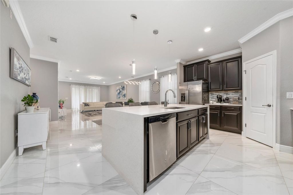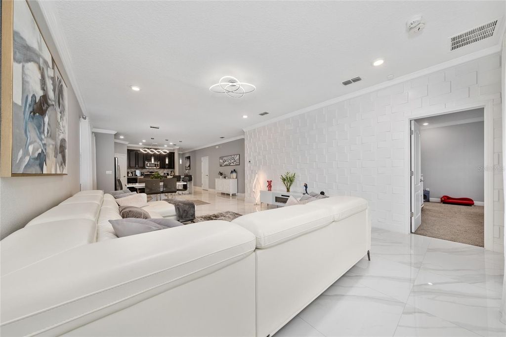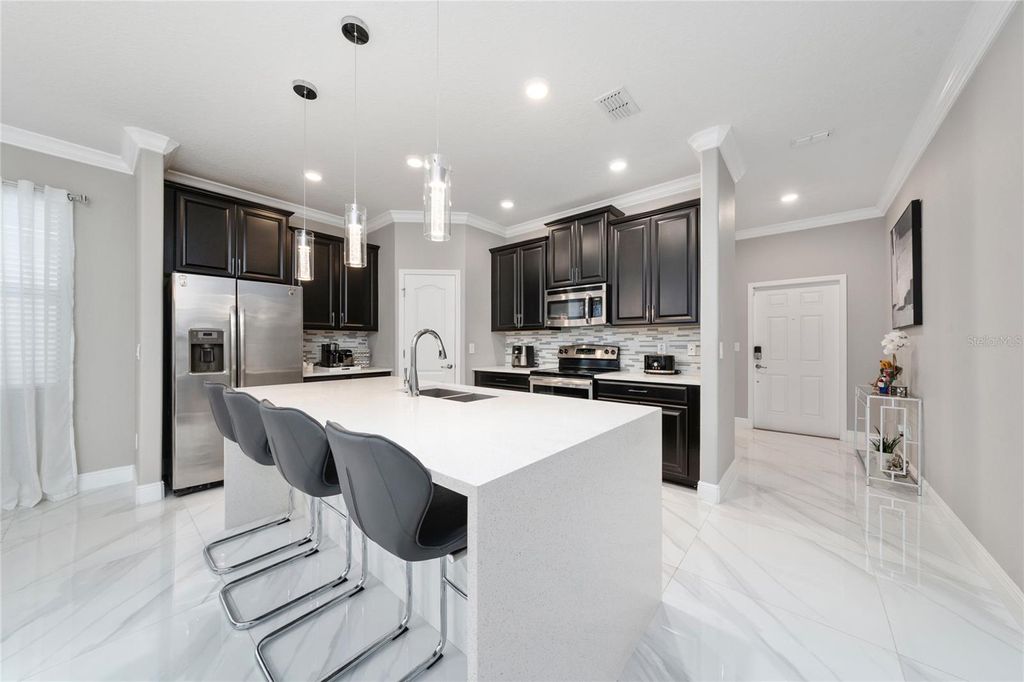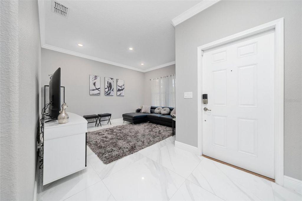 NOW AVAILABLE! This beautiful move-in-ready home in Windermere, FL features 3 bedrooms, 2 bathrooms, and a den in a sought-after school district, just minutes from Walt Disney World and Orlando’s best entertainment. Blending modern finishes with a practical open layout, this one-story property is a perfect fit for families, professionals, and relocation buyers. Enjoy modern luxury details throughout, including 32×32″ polished ceramic tile, elegant 5 ¼” crown molding and baseboards, and smart Alexa-enabled LED lighting. Designed with style and convenience in mind, the kitchen features quartz countertops, designer backsplash, and a dramatic waterfall island. With ample cabinet storage, a walk-in pantry, and upgraded pendant lighting, this space blends elegance and everyday function. Enjoy the privacy of a rear-positioned primary suite with a walk-in closet and spa-like bathroom. Two well-sized bedrooms and a second full bath provide comfort for family or guests, while a bright den/office at the front of the home creates space for work or hobbies. Step outside to a front covered patio or the lanai overlooking a fenced backyard “” perfect for barbecues, gatherings, or quiet evenings under the Florida sky. A brick paver driveway leads to a finished 2-car garage with epoxy flooring. This community offers resort-style amenities, including a pool, tennis courts, basketball courts, and a playground “” all beautifully landscaped and HOA-maintained. Lawn care is included, giving you more time to enjoy the lifestyle. This property offers comfort, upgrades, and lifestyle convenience “” an ideal home for families seeking to live near Disney and within a top-rated school district. Call today to schedule a showing!
