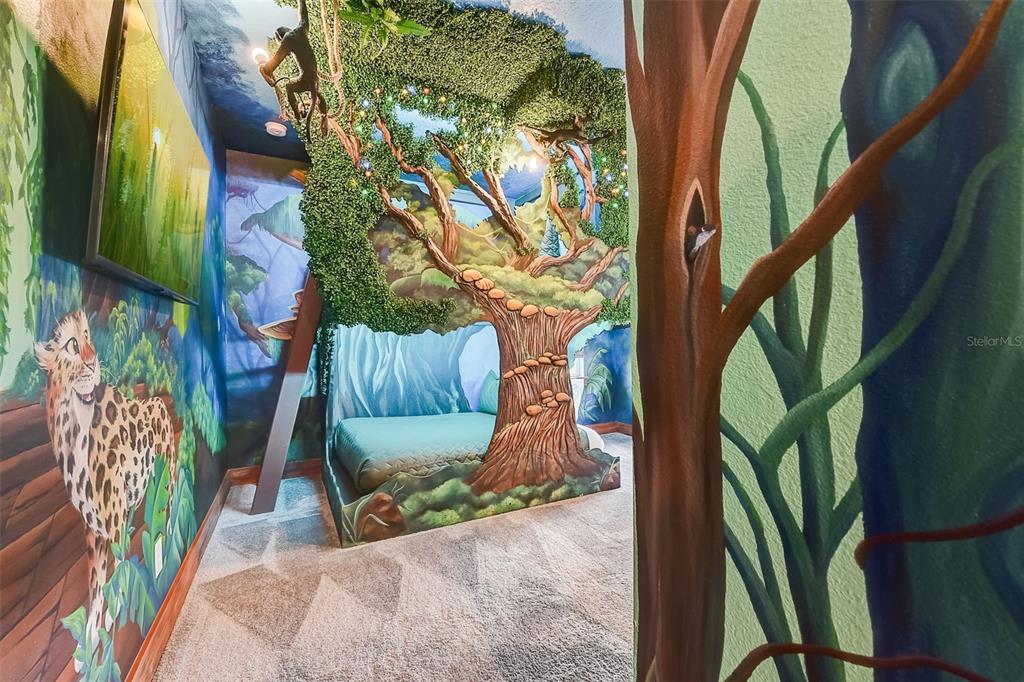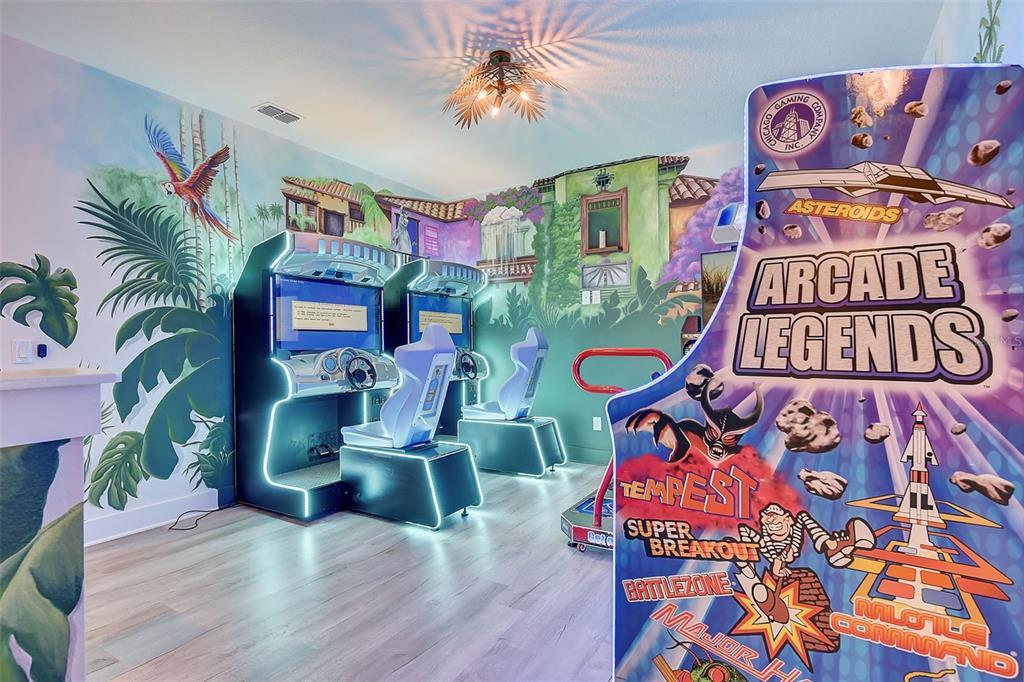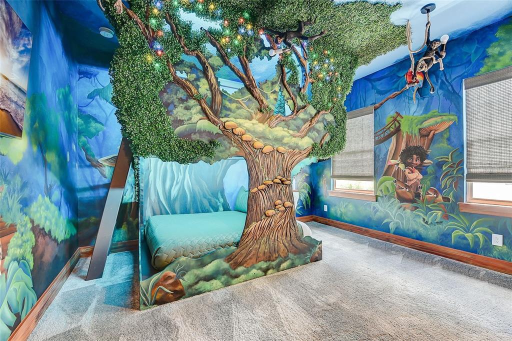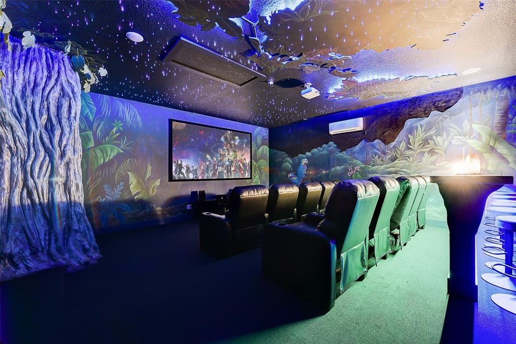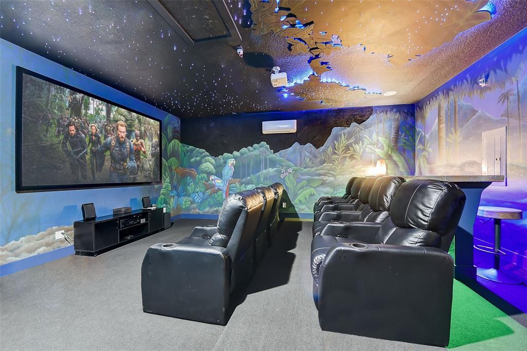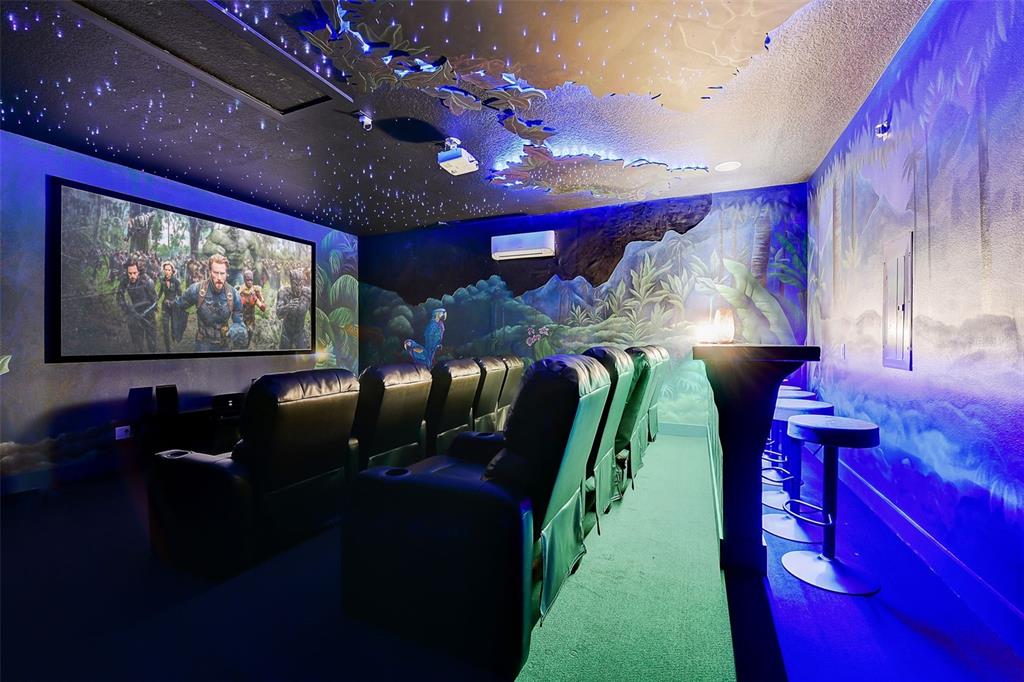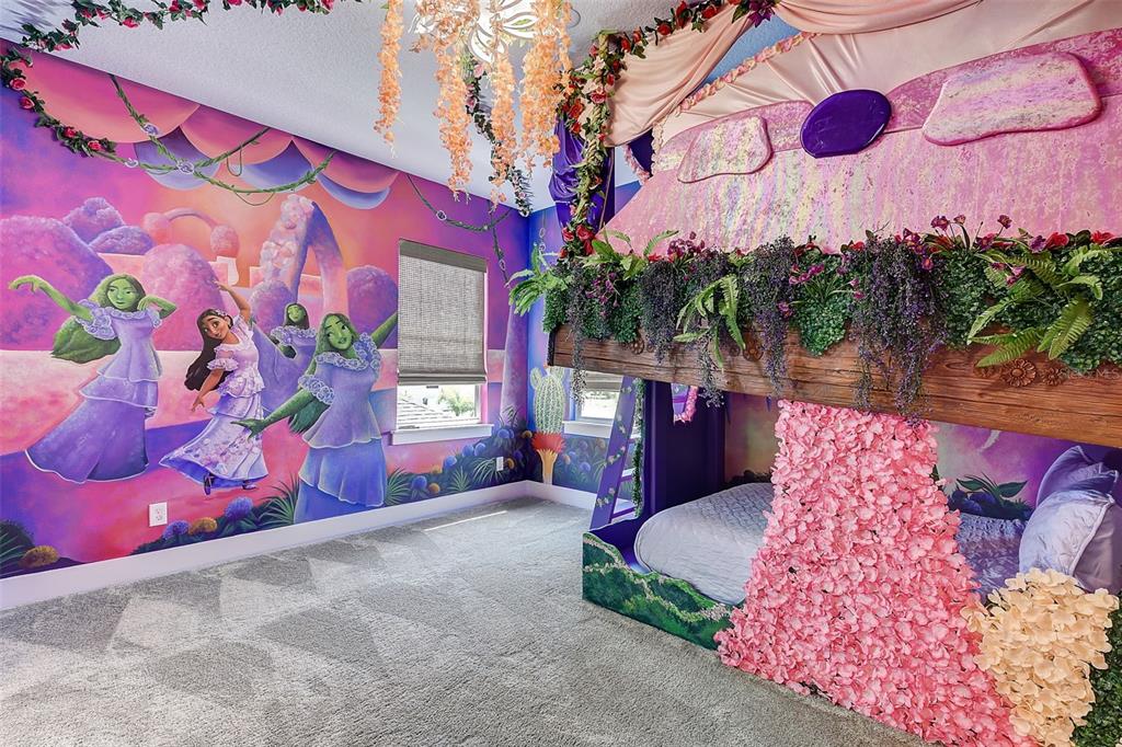 Welcome to the home of “The Family Madrigal.” Drawers! Floors! Doors! Every detail in this LUXURY VILLA is magical. Step into the world of short-term rentals in the GOLFING and ENTERTAINMENT resort of REUNION. Behind each of the 6 BEDROOM doors an IMMERSIVE EXPERIENCE awaits. A few features include: sound activated lights in Pepe’s Cloud Room, monkey chandeliers in Antonio’s Room, Bruno’s connecting CAVE (with SLIDE) that leads to Isabella’s flower filled retreat, special effects in the MOVIE THEATRE, and a fun-filled private ARACADE. The main living spaces tie into the classic CASITA style and provide ample space to cook, lounge, or entertain. This property is TURN-KEY so everything you need is already here, including hidden “easter eggs” in the design you must come tour to find. The downstairs PRIMARY BEDROOM has a HUGE WALK-IN CLOSET and a well appointed BATHROOM. One additional bedroom and bathroom are downstairs and the remaining 4 are upstairs. Check out the ATTACHED FLOOR PLANS and 3-D walkthrough. Outside awaits your POOL and SPA OASIS with loungers, outdoor dining set, and swaying palm trees. Sweet smelling jasmine vines grow around the fence for added privacy and allure. There is a REAR PAVER DRIVEWAY for additional parking or it could easily be added as ADDITIONAL PATIO SPACE by extending the fencing along the perimeter. Think of all the MAGICAL moments you will have and all the RENTAL INCOME this villa will conjure up. ACTIVE MEMBERSHIP is attached and available for transfer.