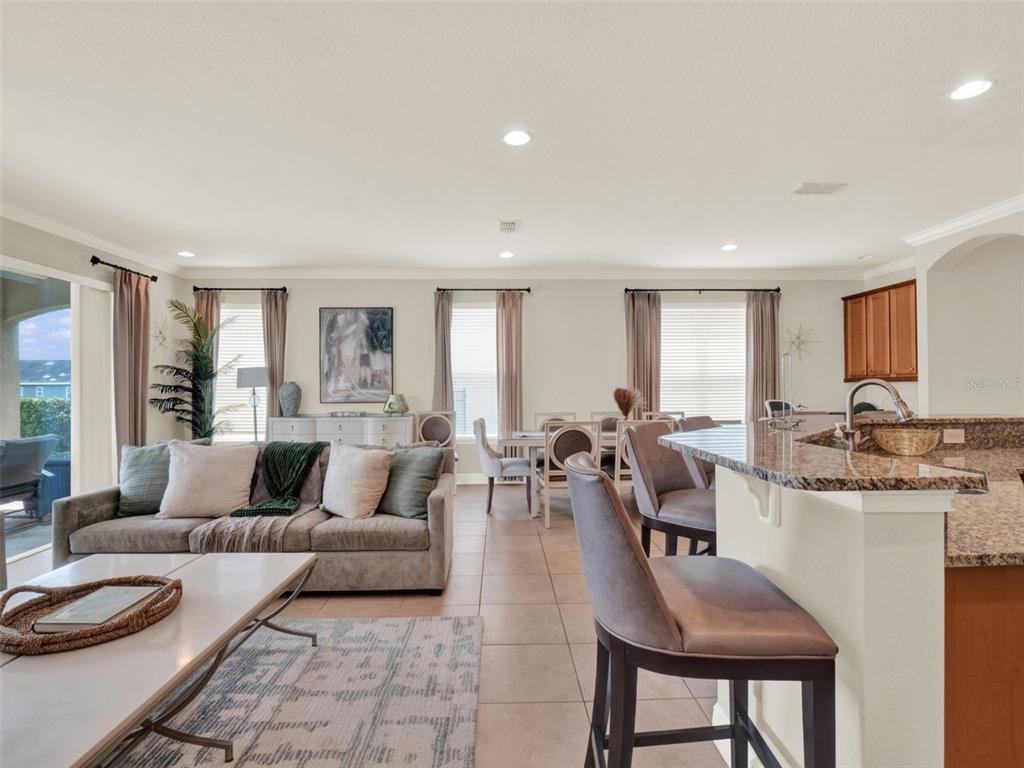 As part of the Encore community, residents and guests enjoy access to resort-style amenities including a private waterpark, fitness center, sports courts, on-site dining, bars, arcade, concierge services, kids’ club, and daily planned activities. Additional perks include complimentary shuttle service to Disney, SeaWorld, and Universal Studios, plus included cable TV, high-speed internet, pest control, 24/7 security, lawn care, pool maintenance, and trash service, all covered by the HOA.