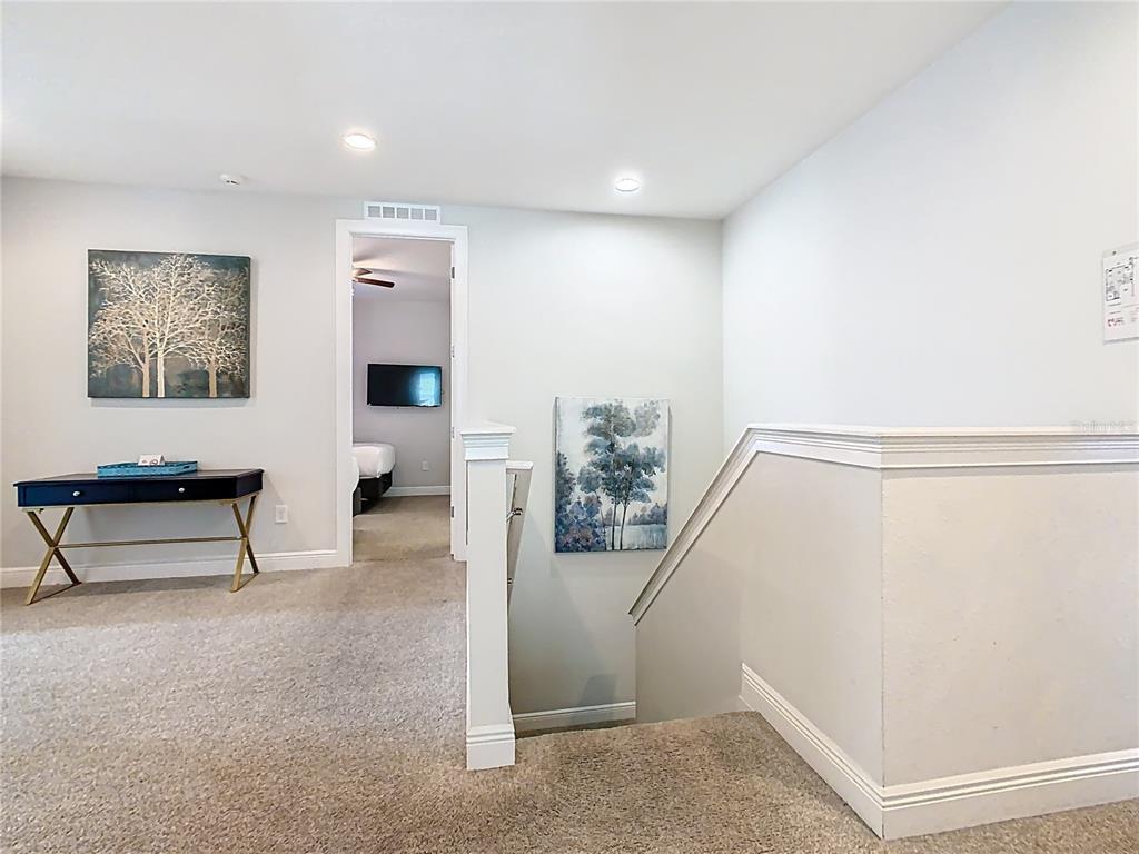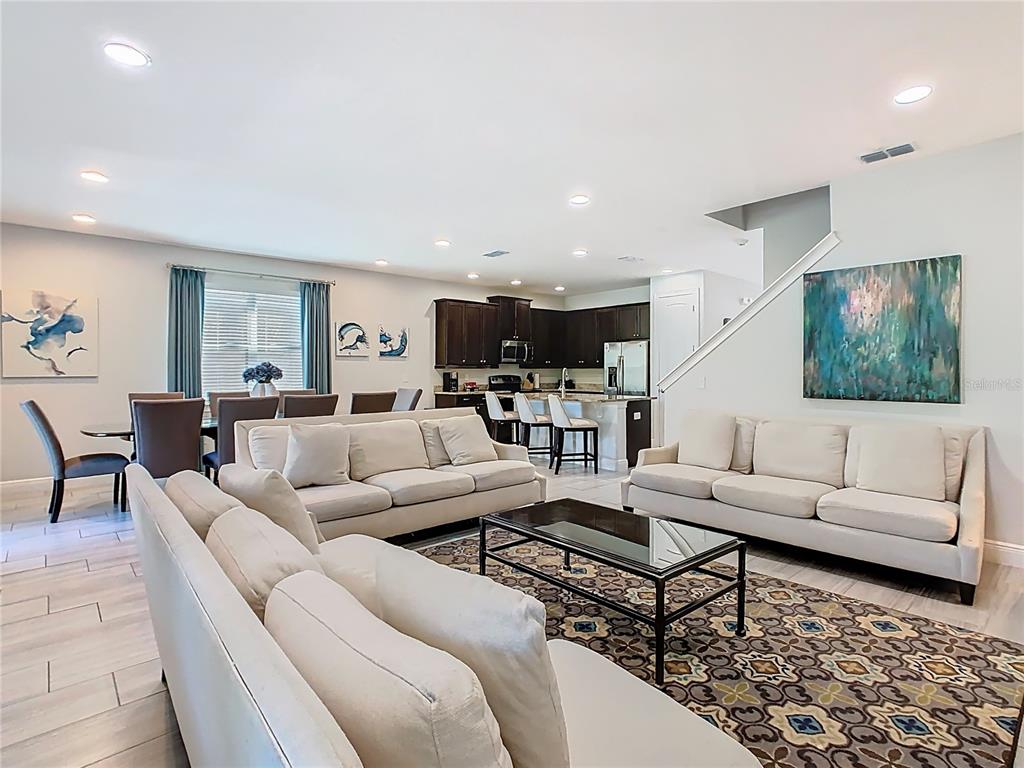 This SPACIOUS 8 Bedroom 5.5 Bath Lancaster Model is being offered FULLY FURNISHED TURN KEY and is located on an EXPANSIVE CORNER LOT with additional Green Space at The Encore Club at Reunion. This Open Floor Plan has been designed with Vacationing Families in Mind. There is a FIRST FLOOR Primary Bedroom with access to the Pool Deck and a First Floor Guest Room as an added Bonus. The Island Kitchen Boasts Stainless Appliances, Granite Countertops, 42″ Cabinets with Crown Moulding, with addition seating available at the Island. There is a nice flow into the Formal Dining and Living Areas allowing hours of enjoyment for Friends and Families. When you step onto the Fantastic Pool Deck you find a Large Covered Lanai, Heated Pool & Jacuzzi and even a Half Bath. As you proceed upstairs you arrive at a loft area, perfect to utilize as a Workspace or Gaming area. Located adjacent to the Loft Area is an AMAZING Bonus room currently being utilized as a 2nd Living area, but can easily be changed into to a Game Room, Movie Theater, or even a 9th Bedroom as the space includes a closet. The remaining 6 Guest Bedrooms and 3 Bathrooms are nicely positioned throughout the 2nd level providing a nice sense of privacy. The Encore Club at Reunion provides world class amenities that include an amazing waterpark, private cabanas, a large zero entry swimming pool, fitness center, recreation room, arcade area, an on site grab & go as well as a full service restaurant. The Encore Club community also provides complimentary shuttle service to Disney, Seaworld & Universal daily as well as to anywhere on property at Reunion Resort for all owners & guests. Located 6 miles from Disney and many other area attractions and dining. easy access to I-4 and a short drive to the Orlando airport.