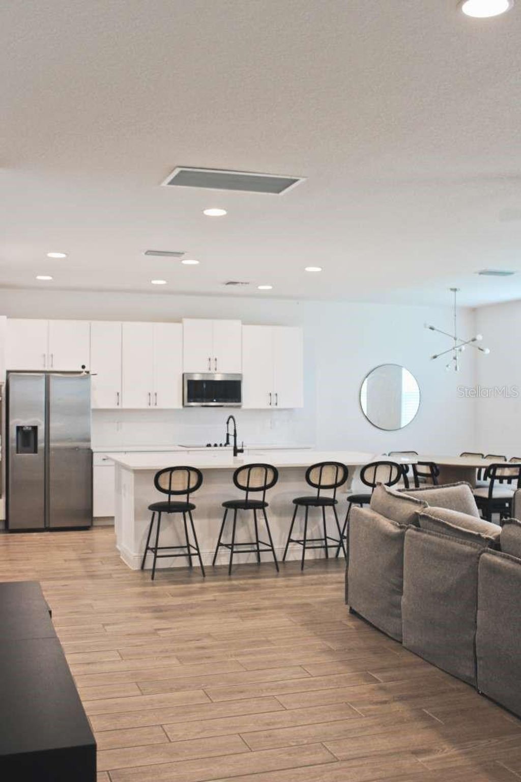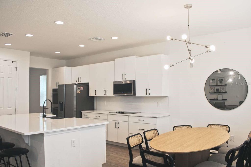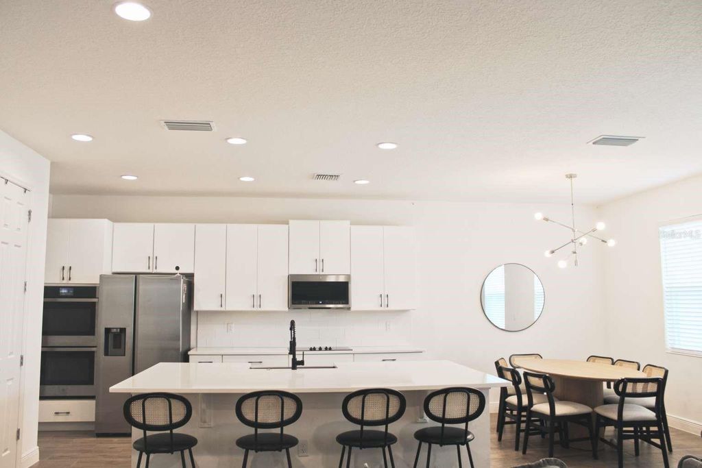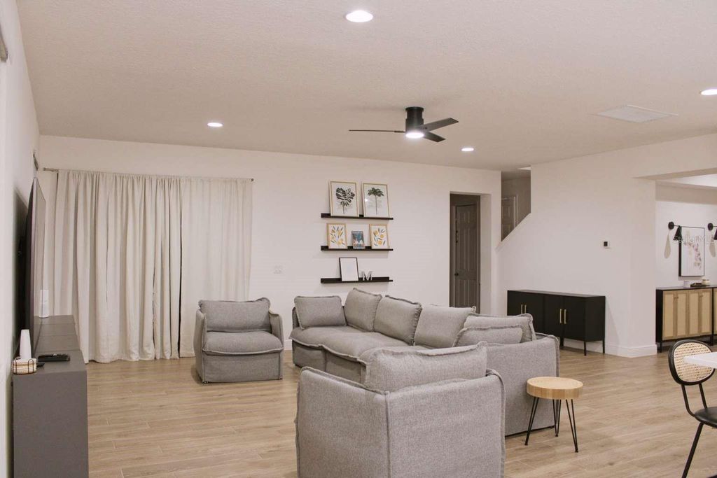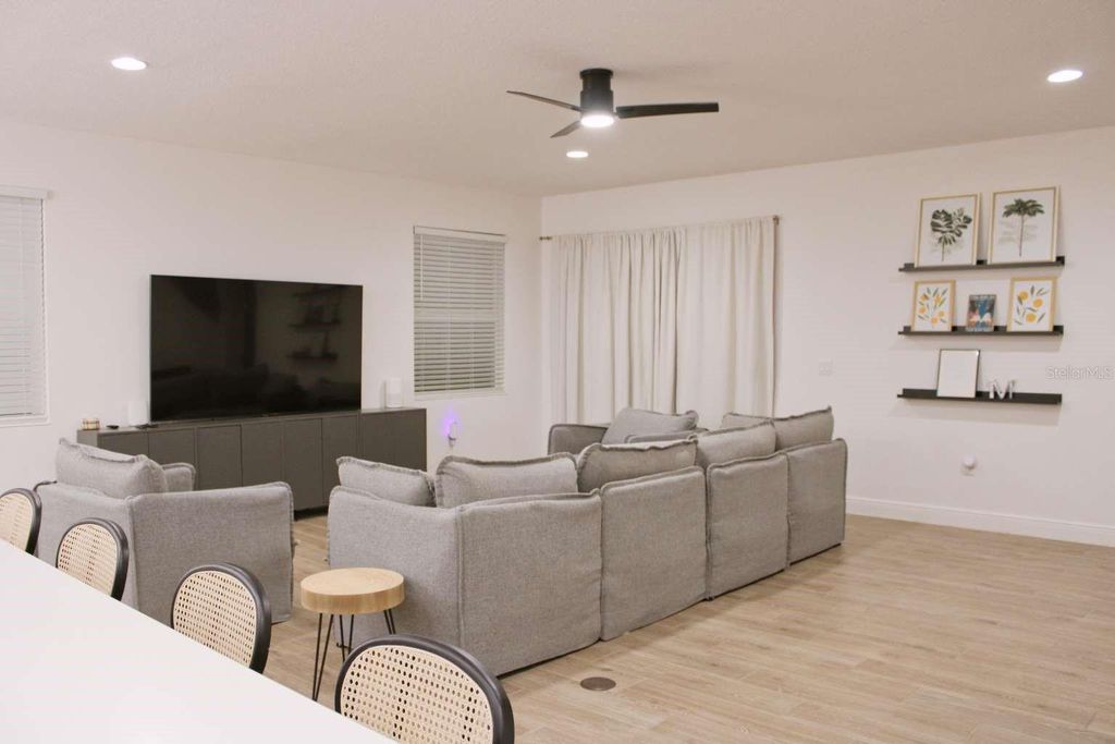 Luxury Living in the Heart of Clermont! This stunning 6-bedroom, 4.5-bathroom home at 7653 Modica St offers an unparalleled blend of elegance, space, and modern convenience. Perfectly situated for easy access to all of the attractions without feeling touristy, this property is a tranquil retreat just a 20-minute drive from the enchantment of Magic Kingdom. Step inside and be captivated by over $100,000 in designer upgrades, including a neutral color scheme that provides a timeless and sophisticated backdrop for any style. The first floor boasts an impressive 9’6″ ceiling height, enhancing the open and airy feel of the home. Elegant designer tile flooring flows throughout the entire first floor, adding a touch of luxury and durability. The main living areas are expansive, featuring two great rooms and a flexible bonus room that can be used as an office, home gym, or media center. The gourmet kitchen is a chef’s dream, boasting top-of-the-line appliances, including double ovens, and ample counter space for preparing meals and entertaining guests. For ultimate privacy and convenience, the first floor features a dedicated guest suite with a private entrance, an ensuite bathroom, and a wet bar””perfect for hosting visitors or using as a private in-law suite. The home faces east, providing beautiful morning light. A huge, fenced yard offers a private oasis for outdoor activities and relaxation. Additional features include: * Ceiling fans in every room for comfort and energy efficiency. * Pre-wired for pool equipment, making it easy to add a future pool. This home is a true gem, combining luxurious upgrades, a prime location, and thoughtful design. Don’t miss the opportunity to own this exceptional property!