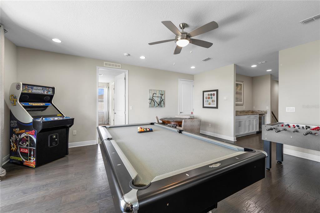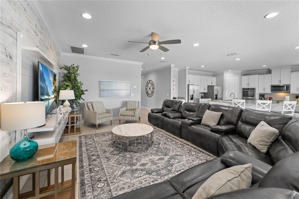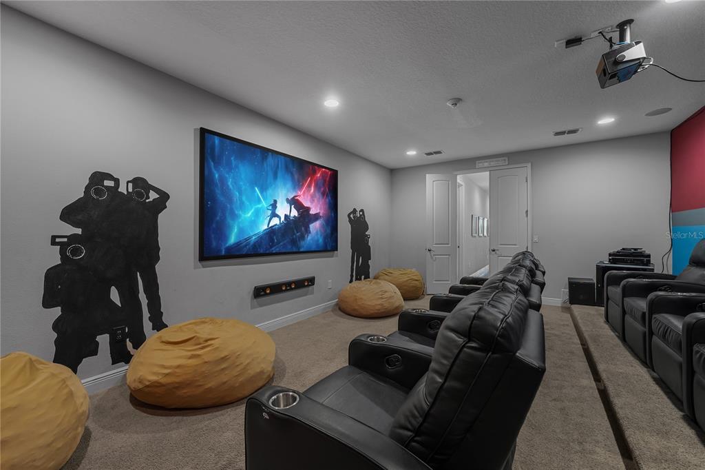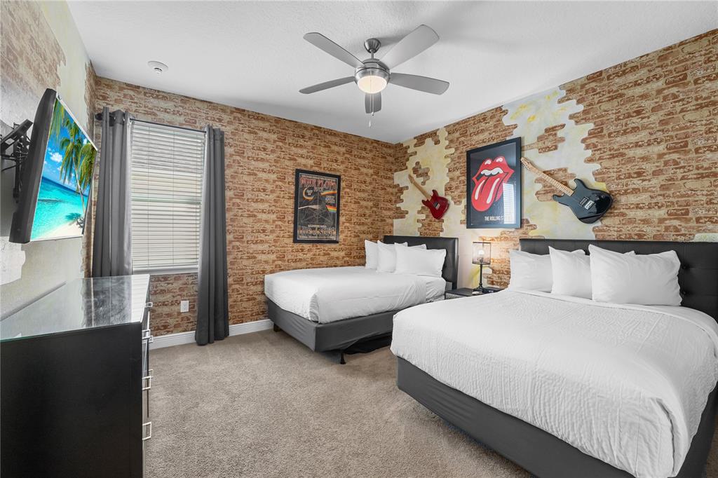 ENCORE AT REUNION | TURNKEY LUXURY VACATION ESTATE WITH PROVEN INCOME — Built in 2018 and zoned for short-term rentals, this exceptional fully furnished 12-bedroom, 12.5-bathroom estate offers over 6,351 square feet of refined living space in one of Central Florida’s most sought-after resort communities and is located just 15 minutes from Walt Disney World, placing world-famous attractions, dining, and entertainment within effortless reach. A grand porte-cochère entry and circular driveway create an impressive arrival, leading into expansive open living and entertaining areas featuring a dramatic great room, formal dining area, and a chef-inspired kitchen with granite countertops, built-in double ovens, convection oven, oversized island with sink, sprawling breakfast bar, and elegant tile flooring—perfectly designed for hosting large groups. Entertainment continues with a private in-home theater and a spacious game room complete with wet bar and wine refrigerator, while the second-floor covered terrace overlooks the private pool and peaceful green space, delivering the ultimate Florida resort lifestyle with seamless indoor-outdoor living. The thoughtfully designed bedroom layout provides comfort, privacy, and flexibility for large gatherings, vacation guests, or multi-generational living, and high-quality furnishings and décor create a cohesive, upscale experience throughout the residence. Beyond its beauty, this property is a powerful income-producing investment, generating nearly $125,000 in short-term rental revenue in 2025 with approximately $95,000 in secured future bookings already in place for 2026, providing immediate cash flow from day one and flexible use as a vacation rental, long-term rental, or spacious primary or secondary residence. Located within the Encore Club at Reunion, residents and guests enjoy world-class resort amenities including a clubhouse, concierge service, fitness center, basketball courts, marketplace, lounge, resort shuttle transportation, on-site dining, and an incredible community water park featuring thrilling slides, splash zones, cabanas, and resort-style pools, all complemented by proximity to championship golf courses, premium outlets, and Orlando International Airport for convenient travel access. All furniture, electronics, kitchenware, décor, art, linens, and household items convey, making this a rare, fully operational, and truly turnkey luxury investment opportunity ideally positioned for both immediate enjoyment and long-term appreciation in one of Central Florida’s premier vacation destinations. Book your showing today to secure this opportunity!