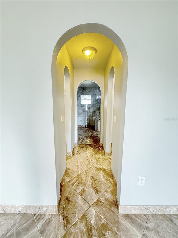 The primary suite offers a peaceful and private retreat with a luxurious walk in shower, a relaxing garden tub, and a double sink vanity topped with sleek granite countertops. The indoor laundry room and the remaining three bedrooms are conveniently situated on the opposite side of the home, providing comfort and functionality for everyday living. Every inch of this property showcases beautiful, easy to maintain tile flooring that enhances its modern and inviting style.