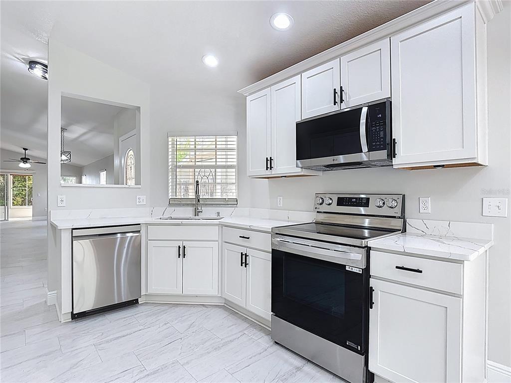 Some photos are virtually staged. ***See the FULL LENGTH VIDEO on Tour Link 1.***If your looking to enjoy what Solivita life has to offer than Don’t miss this BETTER THAN NEW 2 bedroom, 2 bath W/ALL SEASON ROOM Cabernet model COMPLETELY REMODELED with virtually WORRY FREE living on a peaceful CONSERVATION lot located on a CUL-DE-SAC street. NEW installed ROOF and A/C UNIT with a Honeywell Home ProSeries thermostat in 2026, EXTERIOR PAINTED in 2024. Home feature SCREENED ENTRY, GLASS INLAY in Front Door, an EAT-IN kitchen that is a real chef’s delight with the 36″ SHAKER style WHITE cabinetry with CROWN MOLDING, QUARTZ counters, PANTRY closet, ALL NEW SS APPLIANCES. Enjoy cooking on the LG GLASS TOP RANGE with features like SELF CLEANING, CONVERSON BAKE & ROAST, AIRFRY/WARM and WIFI REMOTE START. The SAMSUNG French door REFRIGERATOR with bottom pullout freezer has a water dispenser that has both CUBE and CRUSHED ICE, an interior DELI drawer and comes with a 10 YEAR WARRANTY on the COMPRESSOR. New SS DOUBLE SINK with SINGLE HANDLE BRUSHED NICKEL FAUCET w/SOAP DISPENSER. Home has the same TILE FLOORING THROUGHOUT the entire home INCLUDING the ALL SEASON ROOM. The WALLS are FRESHLY PAINTED in a neutral color with 5 3/4″ BASEBOARDS. Both Bedrooms, Great Room, All Season Room have ceiling fans and the rest of the home has new Oil Bronze light fixtures throughout the home. The ALL SEASON ROOM can be USED AS AN OFFICE, DEN, OR ADDITIONAL SLEEPING SPACE FOR THE GRANDCHILDREN. The All Season room HAS SLIDING GLASS WINDOWS WITH SCREENS and comes with an UNDER THE COUNTER BEVERAGE REFRIGERATOR with above cabinet storage, (2) outlets for TV and additional lighting. Step OUTSIDE and enjoy the summer breeze on the concrete/paver PATIO, perfect for GRILLING. The Primary ensuite bedroom overlooks the conservation area for a relaxing nights sleep, no traffic noise or golf course lawn mowers. You will LOVE the UPDATED/REMODELED BATHROOMS. Separate Laundry room with GE WASHER/DRYER INCLUDED, and upper CABINETRY. GARAGE FLOOR HAS BEEN FRESHLY EPOXIED AND HAS ATTIC ACCESS. Storage Cabinets in the Garage DO NOT convey with the home but can be purchased outside of contract.***Solivita is an active adult 55+ community located in Kissimmee, Florida. It is approximately 50 minutes from Disney World & the Orlando International Airport. Solivita has a total of 5,470 homes. Enjoy your active years in this piece of paradise. Solivita’s amenities include: – a manicured SOFTBALL diamond & field – 36 holes of CHAMPIONSHIP GOLF that can be played by joining the Stonegate Golf Club or paying as you go – 2 STATE of the Art AMENITY centers with updated exercise equipment, yoga studio & meeting rooms – 3 restaurants – 14 HEATED POOLS – 17 PICKLEBALL courts – 9 TENNIS courts – 4 BOCCE BALL courts – 4 SHUFFLEBOARD courts – 3 HORSESHOE pits – a BILLIARDS room – miles of bike paths – 2 DOG PARKS (Small & Large Dogs) – Corn Hole – Tot Lot PLAYGROUND – COMMUNITY GARDEN – over 250 resident clubs. The HOA: – maintains the LANDSCAPING & IRRIGATION systems in the common areas as well as at individual homesites – maintains the roads throughout the community – PROVIDES SECURITY with gate guards and mobile patrols including the Polk County Sheriff – allows AUTOMATED GATE ACCESS for residents via license plate readers – provides residents with Fiber Optic Internet & TV service. ***Poinciana Lakes Plaza is a MAJOR NEW SHOPPING CENTER directly across from the Solivita Main Gate.***