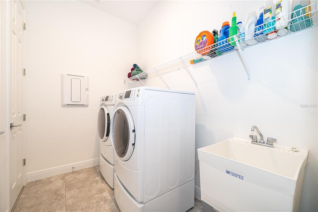 Outdoor living is equally impressive with an extended screened in lanai complete with 3 Hunter remote control fans, creating an inviting space to relax or entertain year round. Additional upgrades include designer 6 inch baseboards, a leaded glass front door, luxury window treatments with upgraded hardware, deluxe Moen plumbing fixtures, a laundry room sink with upgraded front load washer and dryer, an owned alarm system, and an epoxy finished garage floor.