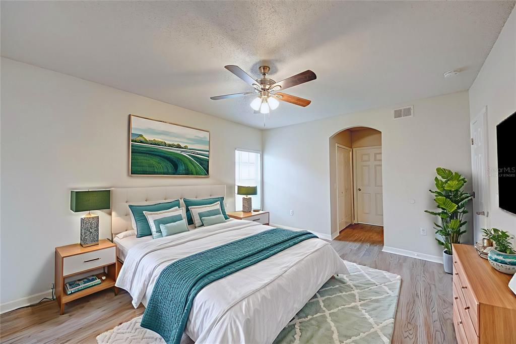 One or more photo(s) has been virtually staged. Located in the desirable neighborhood of Rolling Hills Estates at Formosa Gardens, just a few miles from Disney World, this spacious 5-bedroom, 3.5-bathroom home offers over 2,600 sq.ft. of well-designed living space ideal for families, whether as a vacation home, investment property or primary residence. The primary suite is located on the first floor and features luxury vinyl plank flooring, a walk-in closet, ensuite bathroom, and direct access to the screened-in pool area—perfect for relaxing mornings or evening swims. Additional bedrooms are upstairs with ceiling fans, generous closet space, and great natural light. The kitchen boasts updated white cabinetry, stainless steel appliances, and ample storage and counter space. Tile flooring runs throughout the home, complemented by vaulted ceilings and abundant natural light in the living spaces. Bathrooms have been updated with white cabinetry, overhead lighting, and a mix of double and single vanities. Outdoor enjoyment is effortless with a screened-in pool, covered sitting area, and stone wall along the back of the property for added privacy. A two-car electric garage provides convenience, and the home’s location offers easy access to major highways, shopping, dining, entertainment and schools. New water heater installed 5 years ago ensuring peace of mind and comfort for years to come.