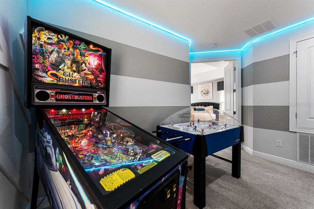 Loft Game Room: A vibrant space complete with foosball, air hockey, pinball, and classic arcade machines.