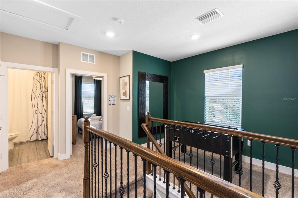 The home features an inviting two-story layout with an upstairs bonus loft and flexible living spaces designed for both everyday living and hosting guests. Designed to accommodate up to 11 guests, this home works beautifully as a primary residence, second home, or short- or long-term rental. At the heart of the home is a contemporary kitchen finished with quartz countertops and Whirlpool® appliances, opening into spacious gathering areas ideal for entertaining.
