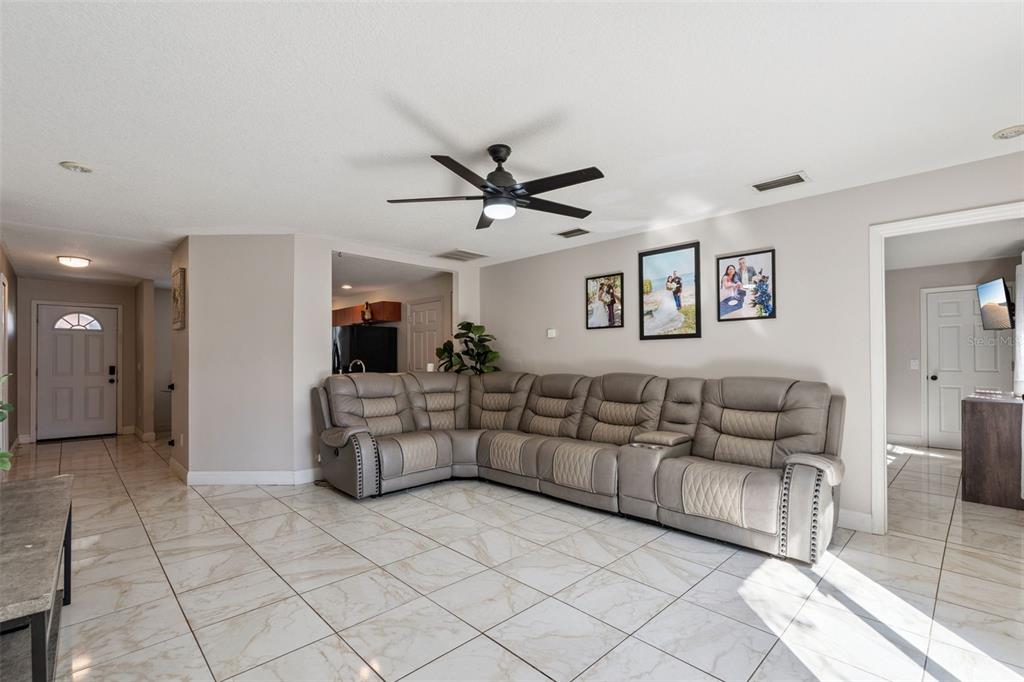 One-story home featuring 3 bedrooms, 2 bathrooms, and a 2-car garage in Poinciana. This home offers an open floor plan with a spacious living room overlooking the backyard, complete with a ceiling fan and two-tone paint. The kitchen features granite countertops and opens to the living area, making it perfect for entertaining guests. Enjoy a fenced backyard with serene conservation views—ideal for relaxing, outdoor cooking, and gatherings with friends and family. Conveniently located just minutes from major shopping, dining, Walmart, Publix, Poinciana Medical Center, and approximately 35 minutes from Disney attractions. Schedule your showing today!