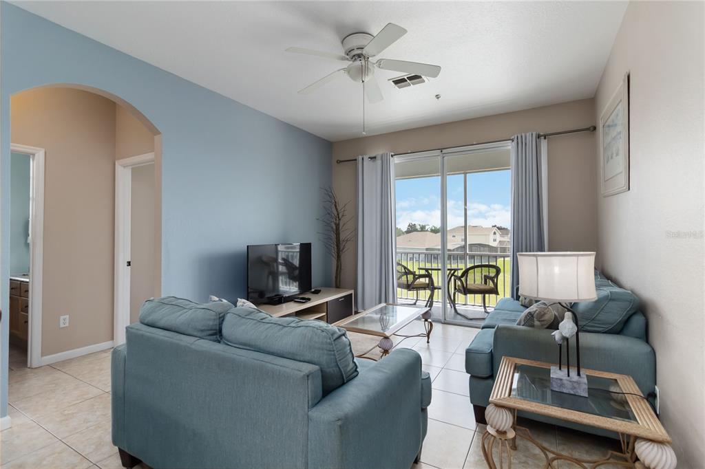 Fully furnished 3BD/2BA condo in the resort-style community of Windsor Palms, just minutes from Disney. Features include granite counters in kitchen and baths, tile flooring in living areas, fresh interior paint, and newer A/C (2021). Spacious layout sleeps up to 6 with in-unit washer/dryer and a private screened top-floor balcony overlooking a peaceful wooded view. Windsor Palms offers 24-hr gated security, heated saltwater pool & spa, splash pad, fitness center, arcade, movie theater, tiki bar, sports courts, playground, and on-site convenience store. HOA covers cable, internet, water, trash, and pest control. Excellent location near Disney parks, Universal, shopping, and dining.