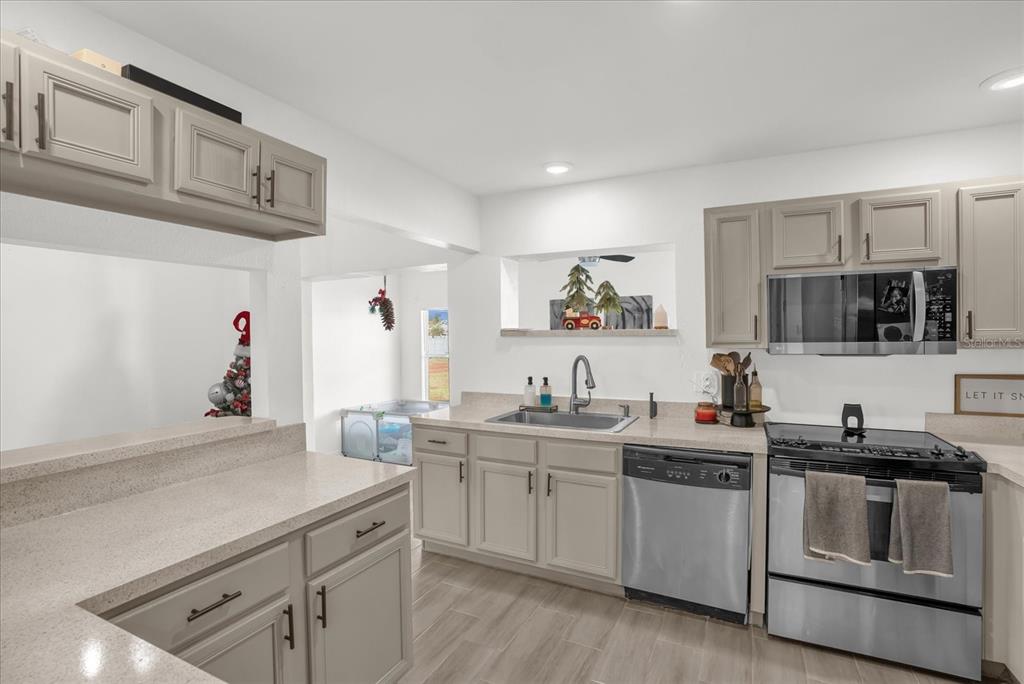 Inside, the home features new ceramic flooring throughout, new appliances, and a fully remodeled kitchen with modern, energy-efficient upgrades. Both bathrooms have been completely renovated, offering a fresh, contemporary look.