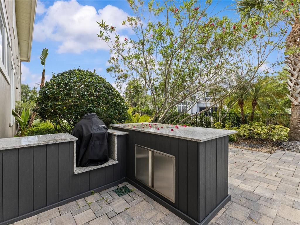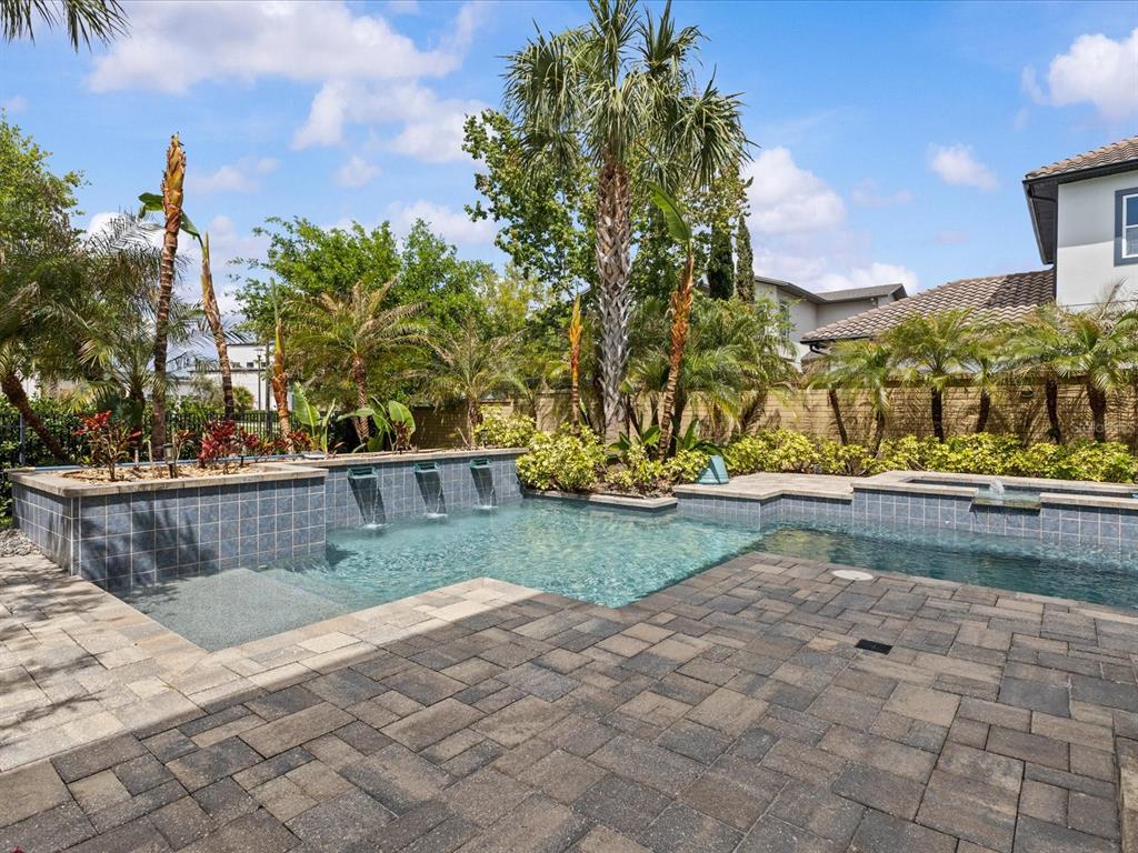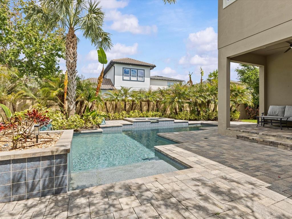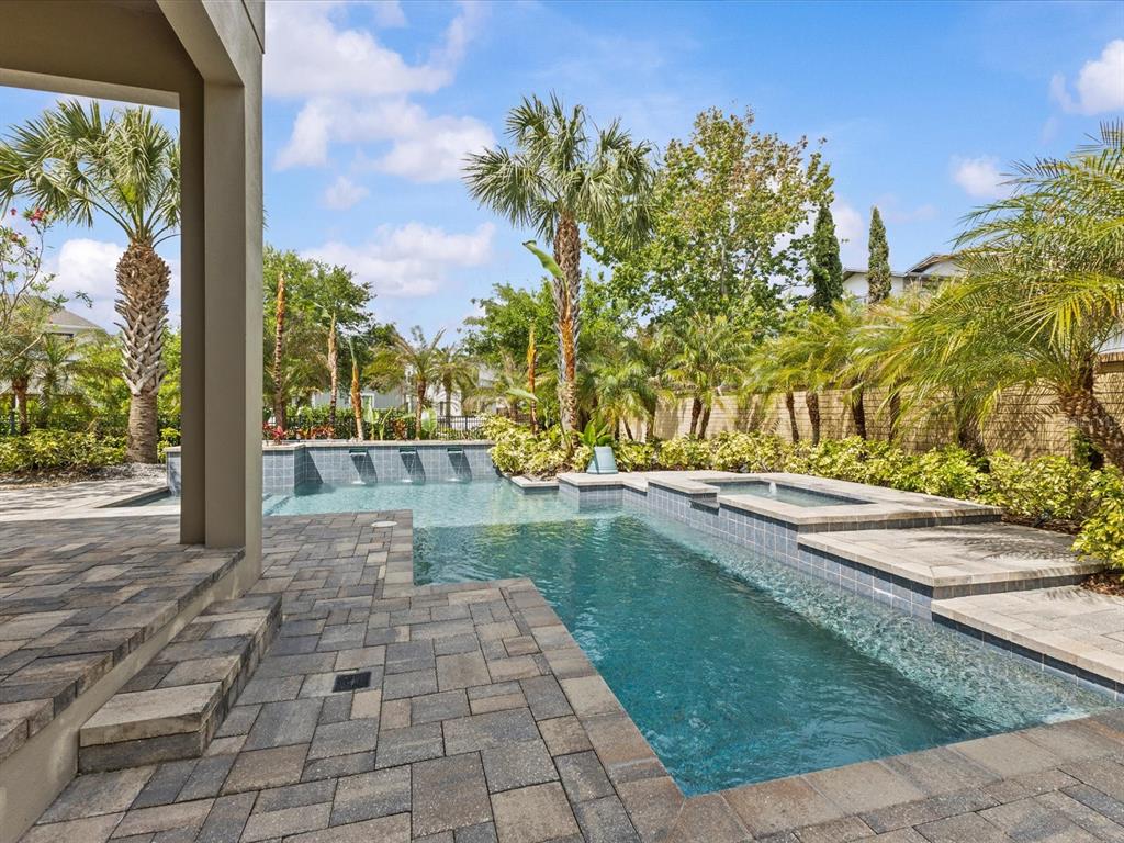 Step outside to your covered lanai and private outdoor retreat featuring a beautifully designed saltwater pool and spa with a waterfall feature, plus an outdoor kitchen with built-in grill. Perfect for relaxing evenings or entertaining year-round. This backyard truly elevates Florida living.