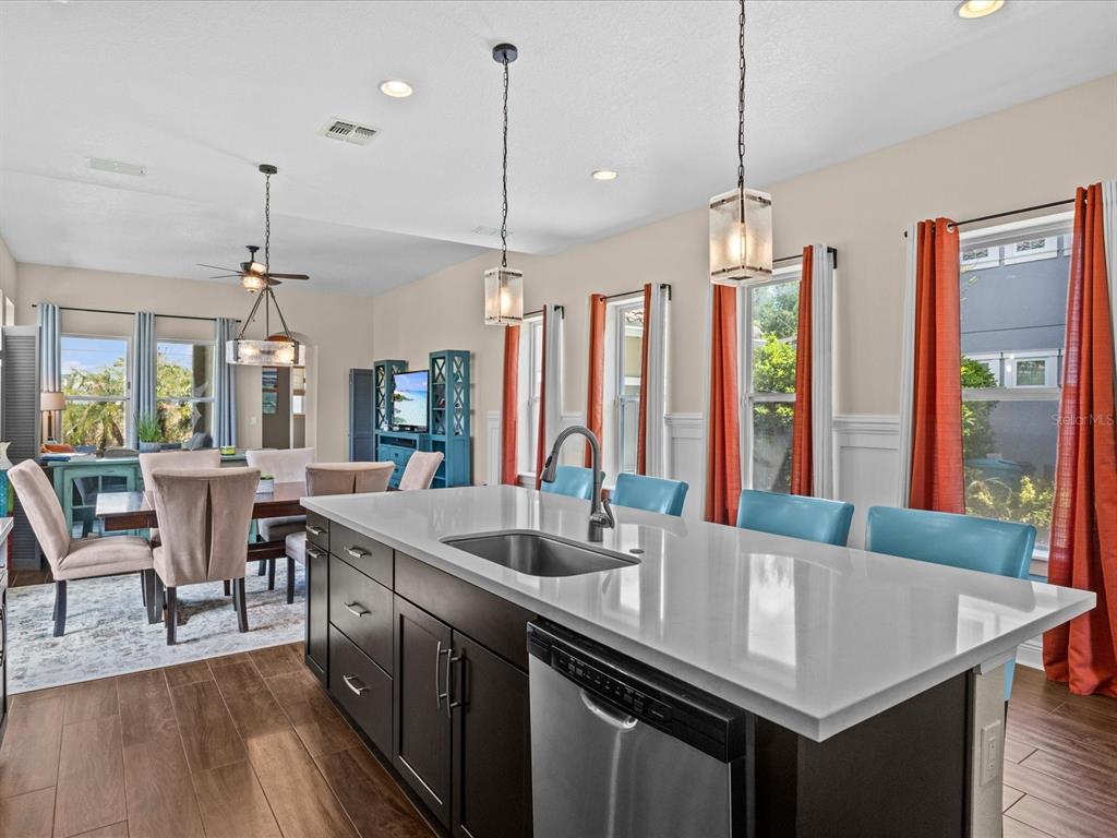 This beautifully maintained 3-bedroom, 2.5-bath home with over 2,400 sq ft offers an open-concept layout designed for both everyday living and entertaining. From the moment you walk in, you’ll notice the light-filled spaces, high ceilings, and seamless flow between the kitchen, dining, and living areas. The kitchen is the centerpiece of the home, featuring solid wood cabinetry, solid surface countertops, and an inviting eat-in space that opens to the main living area. Upstairs, you’ll find spacious bedrooms including a generous primary suite with a walk-in closet and private retreat feel, along with a convenient upstairs laundry room. A private balcony offers additional flexible space and can easily be converted into a 4th bedroom or enclosed office.