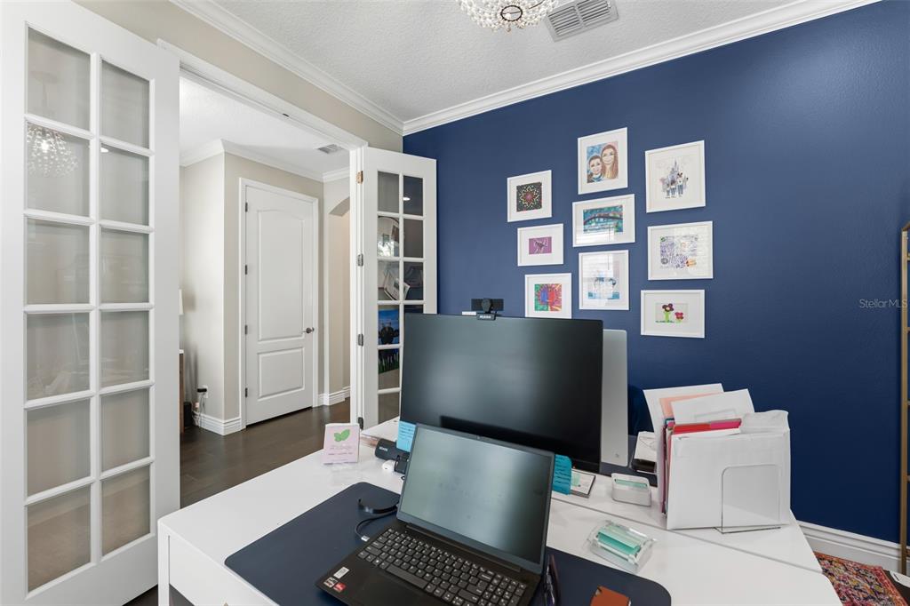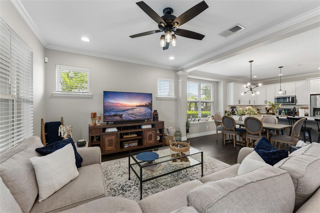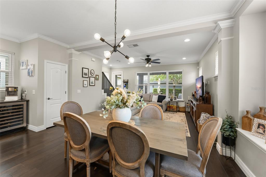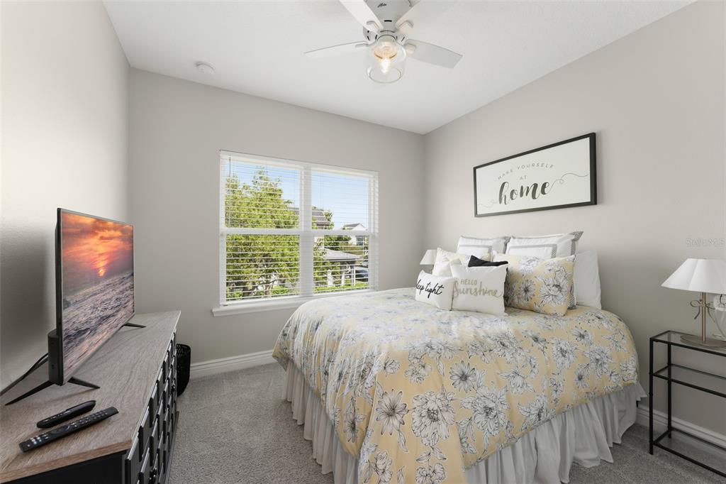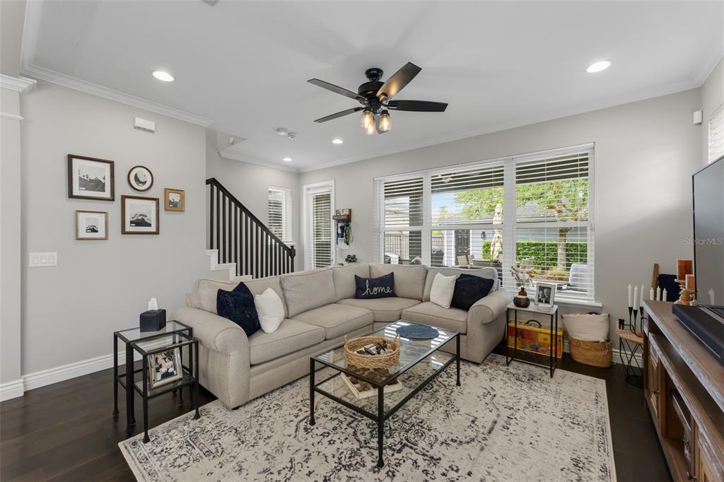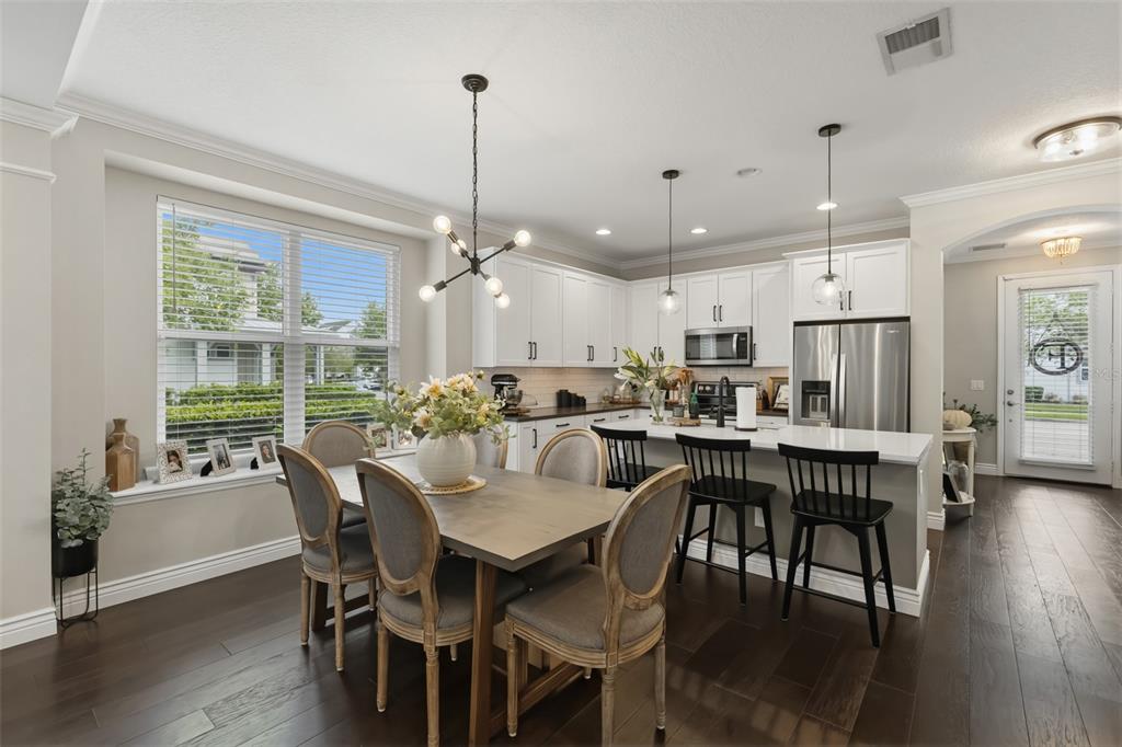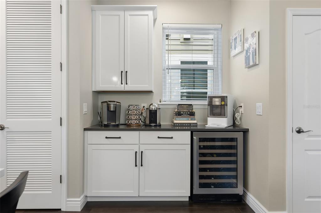 Welcome home to this beautifully upgraded David Weekley Home, perfectly positioned on a premium corner lot overlooking a quiet, landscaped park. This thoughtfully designed home offers 3 bedrooms, 2.5 bathrooms, a dedicated office, and a spacious detached 2-car garage. From the moment you step inside, you’re greeted by an abundance of natural light streaming through numerous windows, highlighting the rich engineered wood flooring that contrasts elegantly with the light, airy interior palette. The updated kitchen is both stylish and functional, featuring 42” hardwood cabinetry, quartz countertops, a tile backsplash, and stainless steel appliances. Just off the kitchen, a built-in coffee bar provides additional storage and convenience. The open-concept main floor is ideal for everyday living and effortless entertaining. Upstairs, the primary suite offers a walk-in closet and a well-appointed bathroom complete with dual vanities, a soaking tub, and a separate shower. Two additional bedrooms share a full bathroom, providing comfortable accommodations for family or guests.Step outside to enjoy the covered patio—perfect for relaxing or unwinding—along with a beautifully paved backyard area ideal for gatherings. The yard offers ample space for fencing, and a large green space is just steps away. HOA dues include basic cable with HBO, high-speed internet, a resort-style aquatic center with Olympic lap lanes, sand volleyball courts, cabanas, and a future fitness center and restaurant. Zoned for highly rated schools and conveniently located just a short drive to the airport, this home offers the perfect blend of comfort, convenience, and community living.