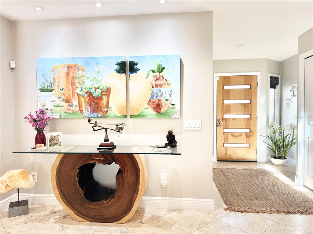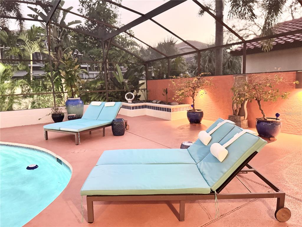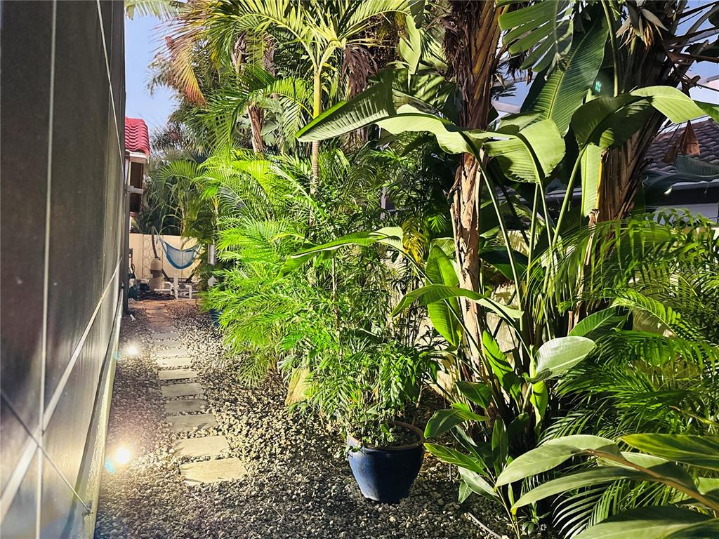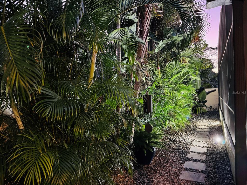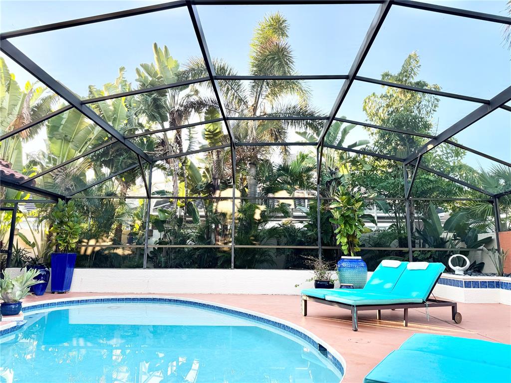 Regarding the outdoors, the backyard is truly ready to enjoy, offering distinct dining, lounging, sun-bathing, and pool areas, all surrounded by lush, privacy-focused tropical landscaping. Carefully curated plants and art pieces are highlighted by a refined lighting plan throughout the home, including adjustable gimbal recessed lighting specifically designed to showcase artwork without glare.