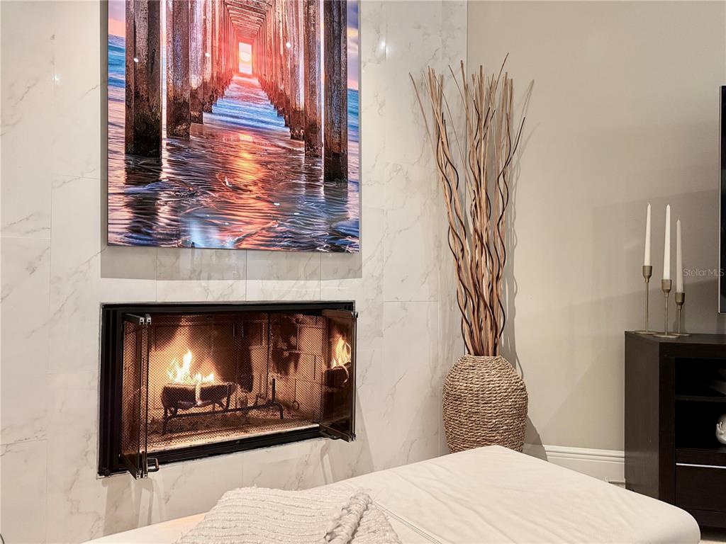 From the moment you arrive, the attention to detail is unmistakable. A beautifully paved driveway offers ample guest parking, complemented by a texture-finished garage floor, a solid wood front door, and manicured succulent planters that set the tone for what lies beyond. Inside, travertine floors welcome you into a bright, high-ceiling interior designed to host life’s most precious moments—whether gathered by the wood-burning fireplace under a delicate chandelier, entertaining in the newly redesigned kitchen with solid wood cabinetry and a quartz waterfall peninsula, or enjoying the flexibility of the upstairs double loft ideal for an office, library, guest retreat, or spa-inspired space. Notice the gorgeous detail railing banister adding elegance and contemporary feel to the interior.
