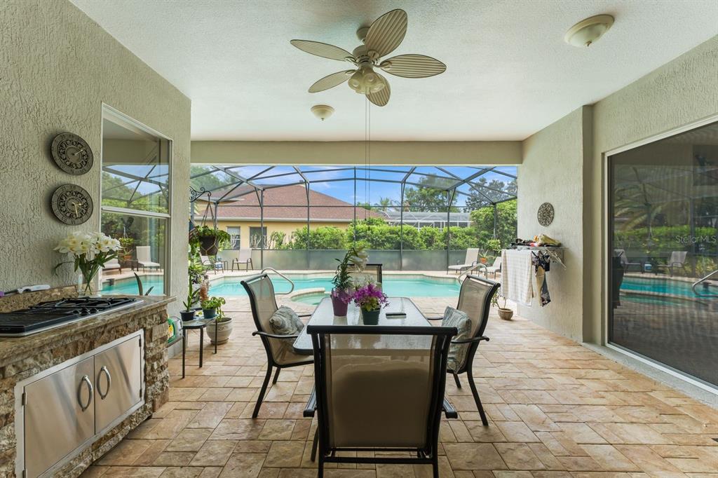 This exceptional 5 bedroom, 3.5 bath residence is located in the guard gated community of Heathrow, where refined elegance meets resort style living. Perfectly positioned on a beautifully treed and landscaped corner homesite, this impressive residence offers a harmonious blend of sophistication, comfort and outdoor luxury. From the moment you arrived, the home’s setting and curb appeal cr3eate a lasting impression. Inside, thoughtfully designed living spaces are enhanced by abundant natural light and a seamless flow ideal for both everyday living and upscale entertaining. The updated kitchen is a true centerpiece, showcasing stunning granite countertops, 42 inch custom cabinetry and an open design that flows effortlessly into the dinette area which overlooks the expansive lanai and pool. Step outside to a breathtaking resort-style outdoor retreat, featuring a sparkling swimming pool and spa accented by elegant pavers, a custom summer kitchen for effortless entertaining and a private outdoor shower – creating the ultimate Florida lifestyle experience. The spacious owner’s suite provides a relaxing sanctuary, while 4 bedrooms offers flexibility for family, guests or home office needs. Resident enjoy a 24 hour gated security, championship golf, racquet club amenities, fitness center, scenic walking trails and convenient access to I-4, SR 417, top rated Seminole County schools, fine dining and premier shopping. A rare opportunity, don’t miss this one!