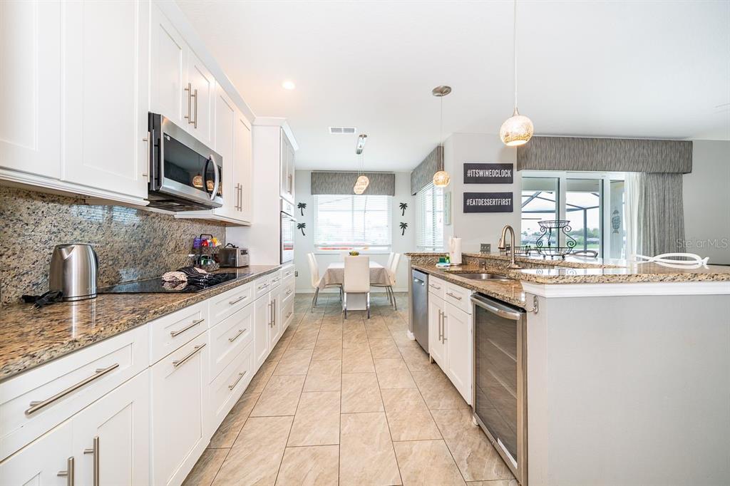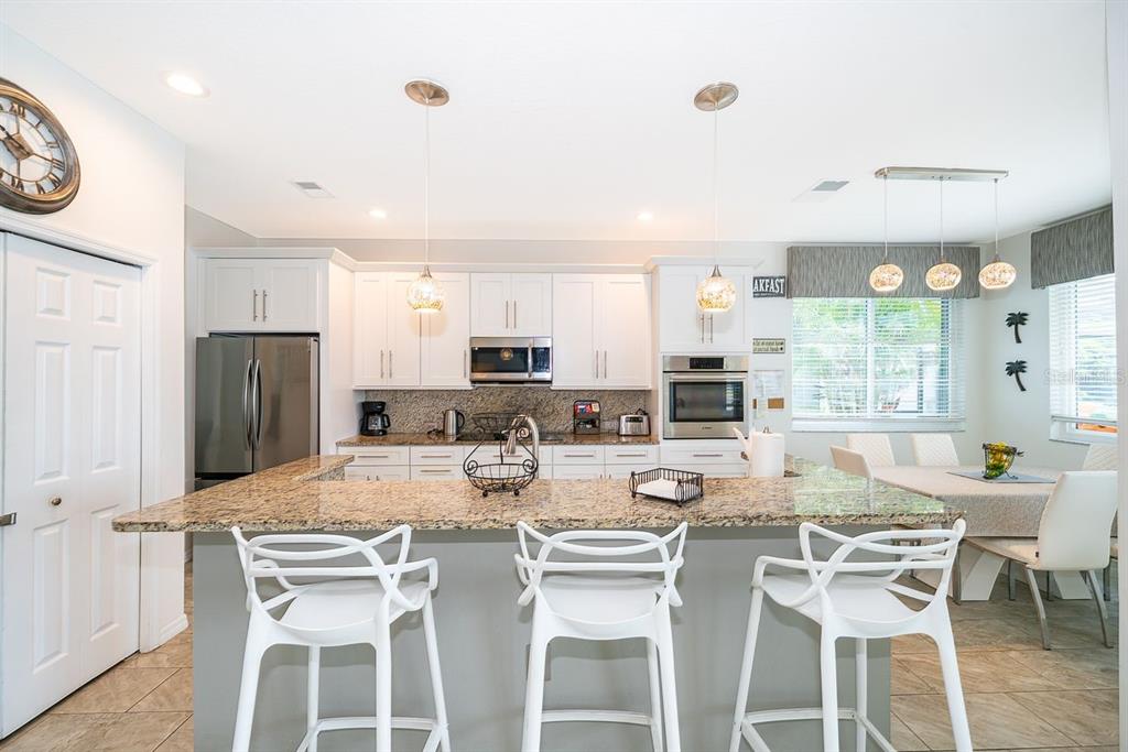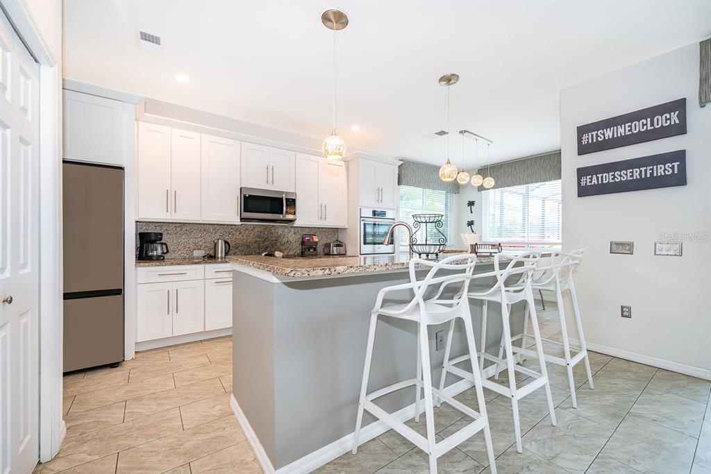 Inside, you’ll find a home designed with comfort and style in mind: ceramic tile flooring, tasteful furnishings, ceiling fans, and smart TVs in nearly every room. The gourmet kitchen boasts upgraded cabinetry, granite countertops, stylish backsplash, and Bosch/Samsung stainless steel appliances, along with a breakfast bar, dinette, and double-size pantry.