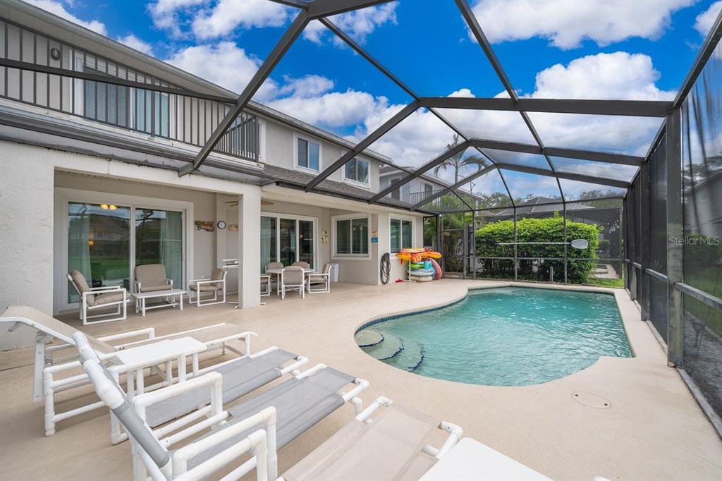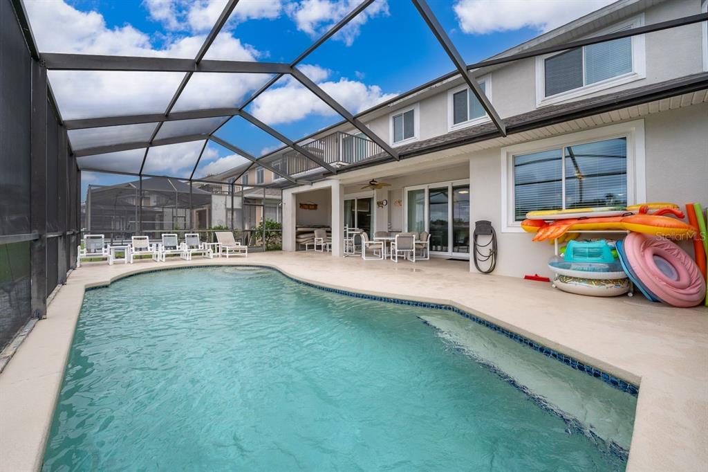 Step outside to your own tropical paradise. The oversized swimming pool with expansive deck and covered lanai is perfect for relaxing or entertaining. For cooler days, an electric pool heater is available. Indoors, enjoy the game room with pool table for hours of fun.