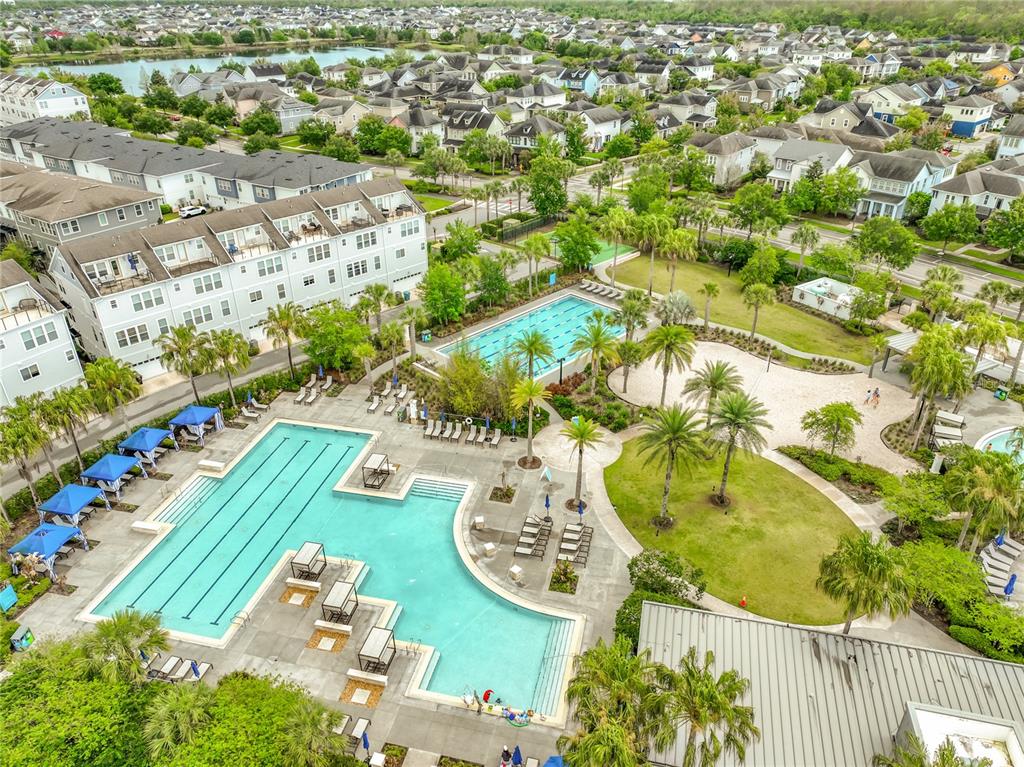 Located in the heart of Lake Nona’s Medical City, Laureate Park is known for its exceptional amenities and forward-thinking lifestyle. Residents enjoy access to a resort-style aquatic center, state-of-the-art fitness facilities, scenic walking and biking trails, community gardens, dog parks, and high-speed gigabit internet included with the HOA. The neighborhood also features Canvas Restaurant & Market, a popular lakeside dining destination, along with frequent community events, farmers markets, and outdoor activities that foster a true sense of connection.