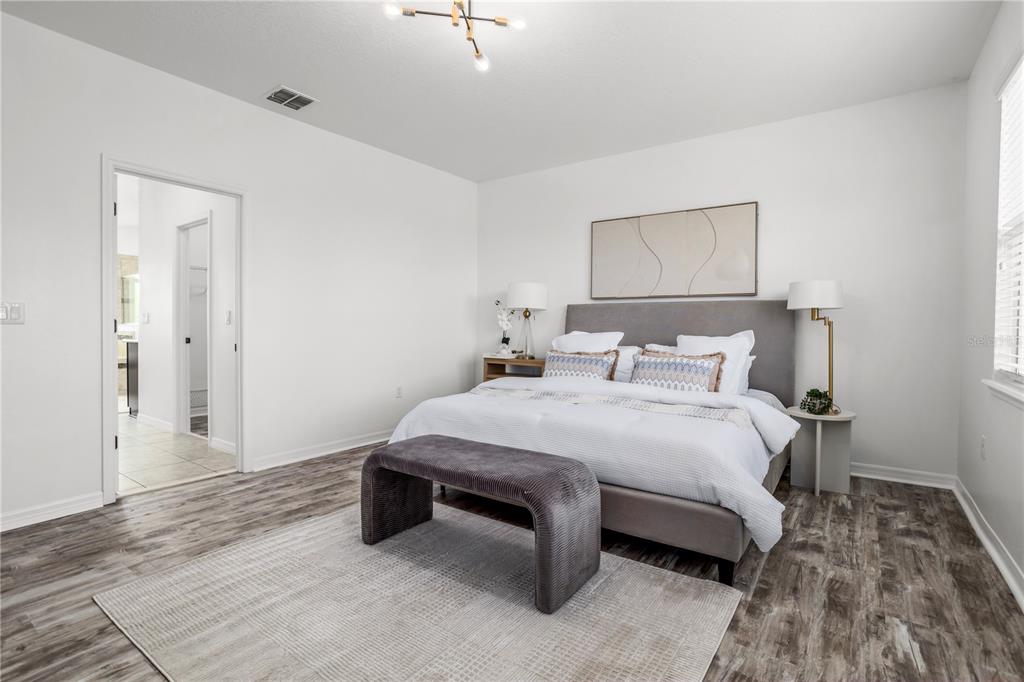 The second floor has brand new LVP flooring throughout and is a haven of relaxation and privacy, featuring 4 bedrooms, 3 bathrooms, a convenient laundry room, and a large loft-style family room ideal for gatherings or cozy nights in. The master suite is a true retreat, offering a spa-like bathroom with his and hers vanities, a soaking tub, and a spacious walk-in closet.