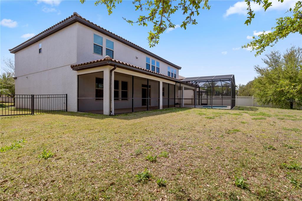 Step outside and indulge in Florida living at its finest. The private heated, screened pool is surrounded by an expansive backyard, perfect for creating unforgettable memories with family and friends. The partially fenced yard offers both privacy and space for outdoor activities.