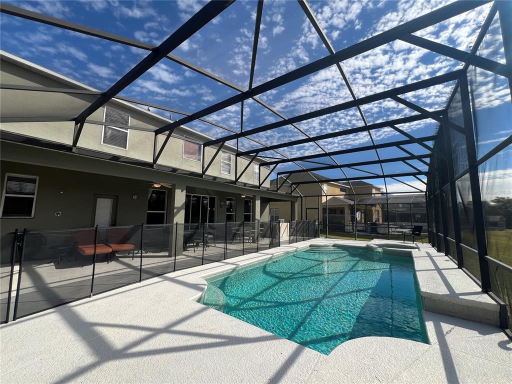 Turnkey short-term rental home, minutes to Disney! Discover a rare opportunity to own this stunning 7 bedroom, 6 bathroom pool home in the sought after Emerald Island Resort. Boasting the largest layout in the community at 3,667 sq. ft., this home is perfectly suited as a vacation getaway, income-generating investment, or forever family home. Enjoy unparalleled waterfront views framed by lush wooded backdrops, creating a serene and private retreat. The expansive screened lanai, which spans the length of the house, features a partially covered area ideal for year round entertaining. Relax by the sparkling South facing private pool and spa and take in the ultimate Florida lifestyle. Step inside to find a well designed floor plan with ample living space, ideal for families or hosting guests. The stylish kitchen is a chef’s dream with abundant cabinet and countertop space, a breakfast bar, and a breakfast nook overlooking the huge living room and pool, your new favorite spot for morning coffee or casual dining. The main floor also features two bedrooms, a formal dining room and the charming “Harry Potter” closet for extra fun and storage. The upper level is thoughtfully divided by two staircases. One leads to a loft sitting area and three themed bedrooms and the other leads to two additional themed bedrooms, all designed for comfort, as five of the bedrooms feature en-suite bathrooms, while the remaining two share a convenient Jack and Jill bath. The 3 car garage has been transformed into an entertainment haven with air conditioning, complete with a mini movie theatre (seating for 8) and a game room with a pool table. Updates include: A brand new roof (11/24), a new pool heater (04/24), newer exterior paint (01/22) and a newer A/C and heat pump (11/20), replumbed A/C lines (2024) and spa actuators replaced (2024). As part of this premier gated community, you’ll enjoy access to an impressive clubhouse with a resort-style pool, Tiki bar, fitness center, sauna, and sundry shop. Other amenities include tennis and pickleball courts, volleyball, basketball, bike rentals, and 11 acres of natural walking trails. The prime location is conveniently located near Orlando’s major attractions, including theme parks, outlet shopping, restaurants, Promenade at Sunset Walk, and Island H2O Live! water park. This home comes fully furnished and equipped with a strong rental history, ready to generate income as a short-term rental or provide your family with a wonderful retreat. Schedule your tour today and experience the ultimate Florida lifestyle in this stunning property.
