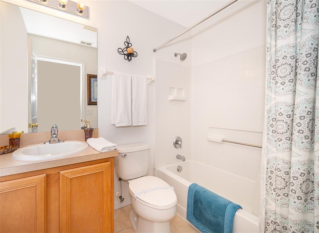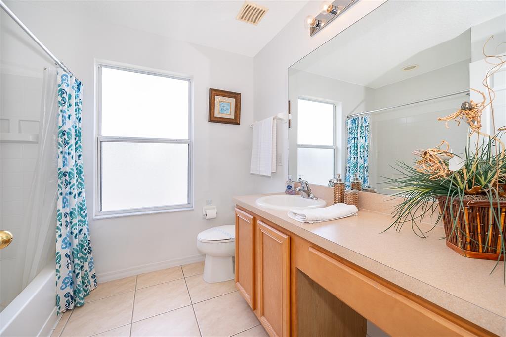This beautiful Kissimmee area 24 hour gated community with pool and hot tub home has 5 bedrooms with 4 bathrooms and two primary main bedrooms. One on the first floor and the another on the second floor. This property can be used as a residential home or a short term rental Disney rental property. New air handler was replaced in 2025. Roof was replaced June 2023. Pool re- surfaced 2018, All new carpet 2022 & new pool pump and motor 2023. Just minutes from the Disney parks. The pool deck has a 14 x 28 ft pool plus an in-ground hot tub with a shaded Lanai and is South facing. The pool deck has sun loungers a table and chairs. The home is fully furnished (if you want the free furniture package) The home itself has 5 bedrooms and 4 bathrooms. All bedrooms have cable TV’s. The spacious main bedroom on ground level has an en-suite bathroom which has a walk-in closet, corner bathtub and a walk-in shower. There is also a double bedroom on the ground level with bathroom directly across the hall with a shower in the bathroom. On the upper level, there are two twin rooms which share the fourth bathroom and also a second primary suite with en-suite bathroom. The garage has been converted into a games room with pool table, foosball and air hockey tables. (You can easily change it back to a garage if you want to use the home as your residents.) The living area is a large spacious room with a ceiling height of 17 ft. Furnished with Cable TV and surround sound system. The kitchen area is fully equipped with a range cooker, microwave oven, dishwasher and large fridge/freezer. There is also a separate dining area as well as a utility room with a washing machine and dryer. The home also benefits broadband connection part of the HOA payment. The resort itself is a gated community with the gatehouse manned 24/7. The resort has a clubhouse with concierge service, fitness room and a sauna. Also a new food and bar as viewed on the photos. Outside the clubhouse, there is a communal pool with spa and poolside Tiki bar walking trail, mini golf, tennis, volley ball, basket ball and playgrounds for the little ones.