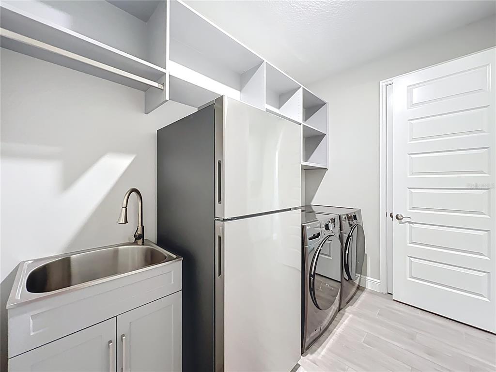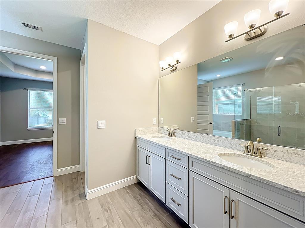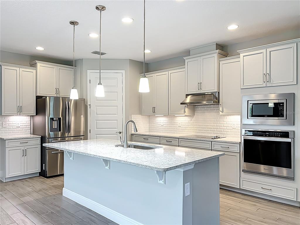 Nestled in Phase 3 of Waterleigh in Horizon West, this stunning single-story home offers 4 bedrooms and 3.5 bathrooms on a premium .41-acre lot with no rear neighbors, providing both privacy and tranquility. Situated on a quiet cul-de-sac, the home features beautiful views and a peaceful setting, just a short stroll from a charming community green space with a pavilion and picnic area. Inside, you’ll find wood-look tile flooring throughout the main living areas, and bedrooms with new engineered wood flooring recently added. The spacious master suite boasts a large walk-in closet, dual vanities, a soaking tub, and a glass-enclosed shower. A second bedroom at the front of the home offers its own private bathroom and walk-in closet, ideal for guests or multigenerational living. The chef’s kitchen features sleek quartz countertops, stainless steel appliances, and a functional layout perfect for entertaining. The laundry room has been upgraded with a new washer, dryer, refrigerator, sink, and added shelving for extra storage. Additional highlights include a 3-car garage with new epoxy flooring and Tesla EV charger outlet, recently sealed driveway and lanai, and newly installed rain gutters. Enjoy low-maintenance living with lawn and shrub care included in the HOA. Waterleigh offers a wide range of resort-style amenities, including three pools, fitness centers, community clubhouses, mini golf, dog parks, and scenic walking trails. Conveniently located near Publix and just a short drive to many restaurants and Disney World. This home combines luxury, comfort, and convenience.