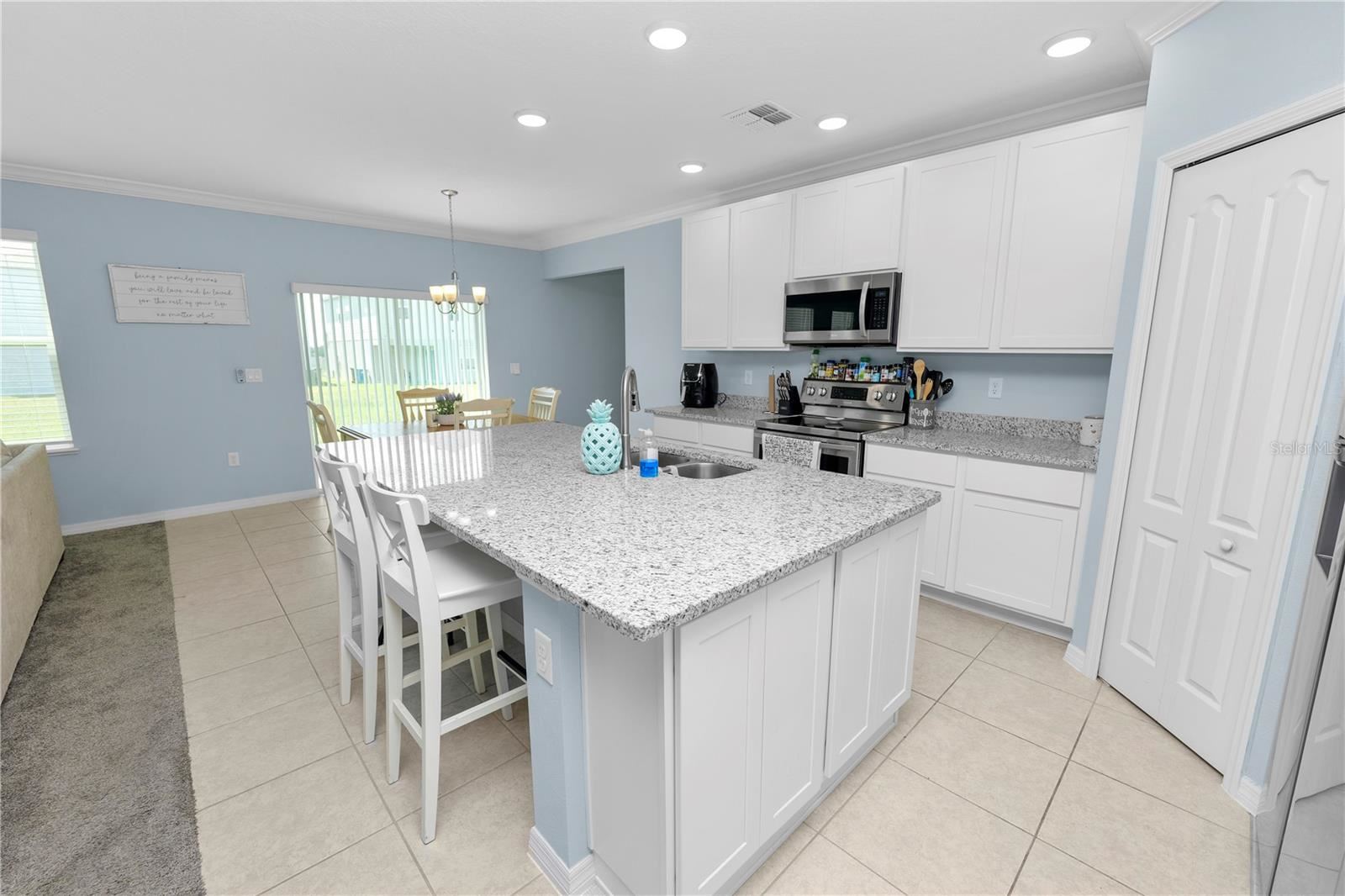Short Sale. Welcome to this 5 bedroom 3.5 bathroom home located conveniently in Davenport with easy access to dining, shopping, and major roadways. Arriving at the home, you’ll love the covered front porch and beautifully landscaped yard. Entering the home, you’ll find a flex space that could easily be used as a home office, along with a half bathroom. The large open living area with plenty of natural light offers a great place for relaxing with friends and family. The spacious kitchen/dining area features a large island, granite countertops, and stainless steel appliances as well as a pantry for storage. You’ll find one bedroom and one full bathroom with a single sink granite topped vanity and stand up shower downstairs, making it a great guest suite. Upstairs, you’ll find a large loft space which could easily accommodate a play room or home theater space. The spacious primary bedroom features tray ceilings, and plenty of natural light. The en-suite features a dual sink granite topped vanity, a soaking tub, stand up tiled shower and a large walk in closet. The remaining bedrooms are generously sized and share the main upstairs bathroom featuring a dual sink granite topped vanity and a tub/shower combo. The home also features an upstairs laundry room for your convenience and solar panels for increased energy efficiency. This home has so much to offer, schedule your private showing today!