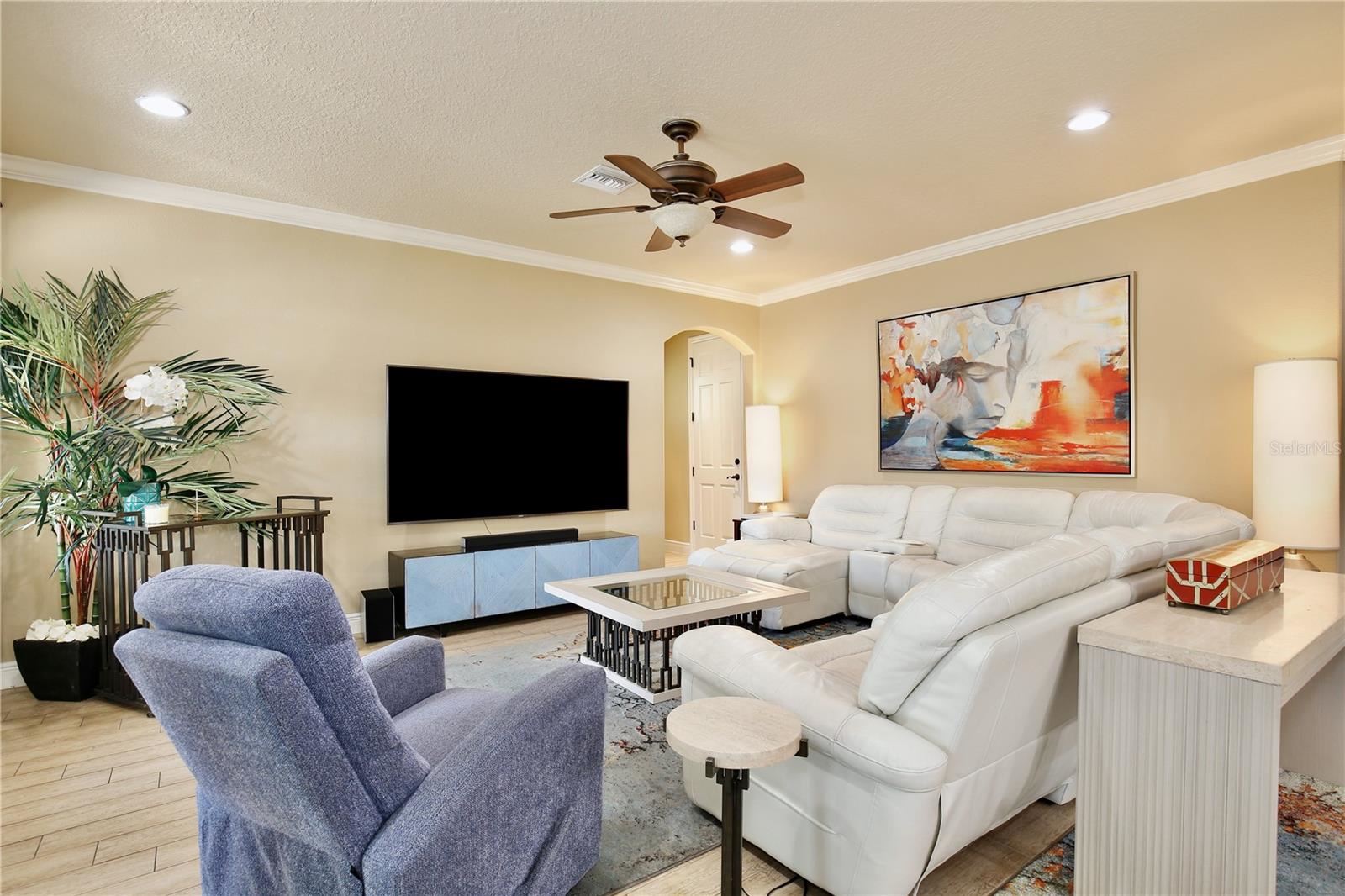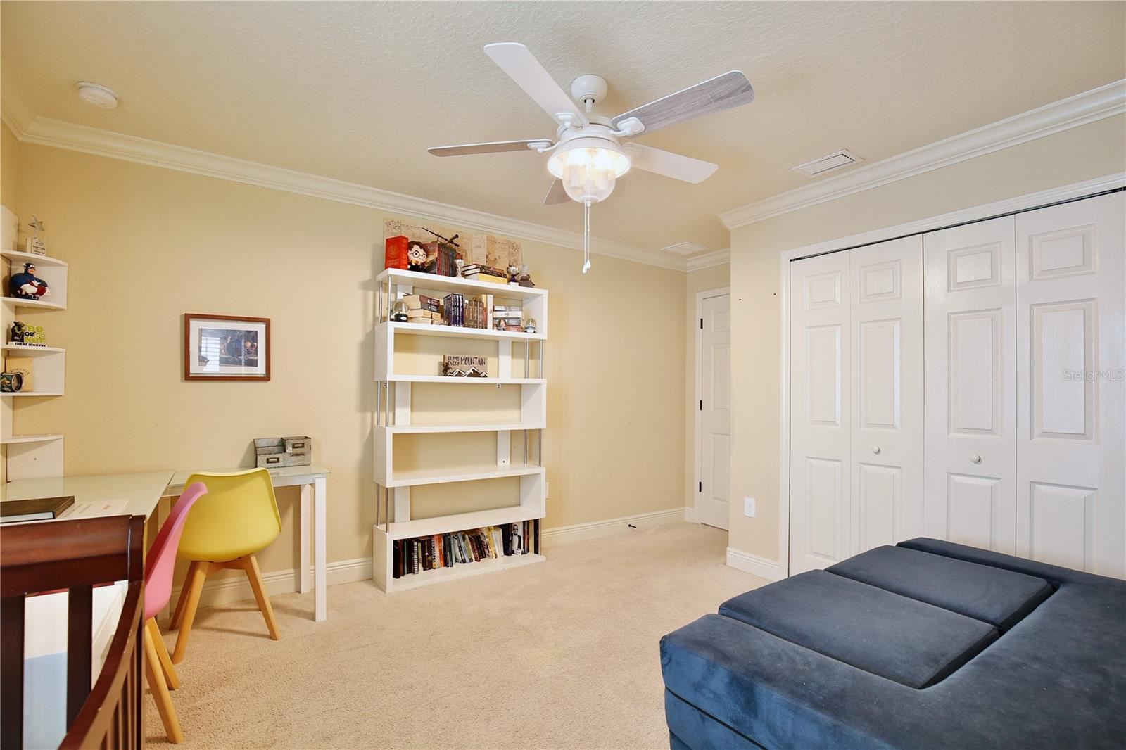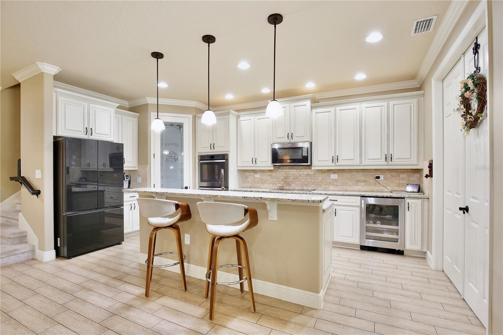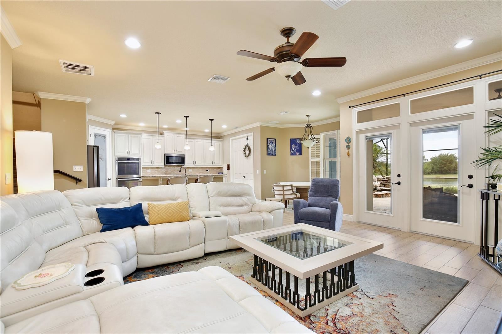 Experience the enchantment of a luxurious lifestyle with a home that offers elegance, comfort, and a touch of magic. Welcome to a stunning residence where every day feels like a vacation, with Disney World’s fireworks dazzling over the water view right in your backyard. This beautifully appointed Spanish style home boasts impressive curb appeal with its barrel tile roof, paver driveway, and a two car garage. As you approach, the covered front porch and landscaping adorned with palm trees invite you home. Inside, the home unfolds with a beautiful foyer featuring elegant tray ceilings, arched walkways, and neutral colors that set a serene tone. Entertain guests in the dining room, crowned by a chandelier and accented with plantation shutters over frosted privacy windows, and conduct business in the front office with its double door entry and crown molding. The living room and breakfast nook has tranquil water vistas, creating a relaxing atmosphere along with wood-style flooring and glass doors leading out to the lanai, featuring stone flooring and an opulent fountain. The lanai also has access to the living room’s half bath. The gourmet kitchen is a chef’s delight featuring shaker cabinets, stainless steel appliances, granite counters, a pantry closet, and bar top seating at the center island. Enjoy the convenience of a wine fridge and built in double ovens, while the bonus room with a double door entry provides additional space for your needs (currently utilized as a cake decorating room). Upstairs, awake to water views in the spacious primary suite with tray ceilings and two walk in closets. The sumptuous bath with dual sinks and a glass door shower provide a relaxing retreat. The giant bonus room (currently utilized as a bedroom) is ideal for a home theatre or game room. Two guest bedrooms share a Jack and Jill bath with dual vanities and a private tub/shower combo. The final bedroom conveniently sits alongside a well appointed bath with a glass door shower. The laundry room offers cabinet storage, a sink, and counter space for easy folding. Host unforgettable gatherings and barbecues on the outdoor patio, set against a backdrop of the stunning stone waterfall, water views, and the mesmerizing Disney fireworks. With a running track behind the home leading to the amenities, residents can enjoy access to a community pool with a splash pad and playground. Perfectly nestled between the Tibet-Butler Nature Preserve and Disney World, this location offers a blend of nature and wonder. Hit the putting green at nearby golf courses, enjoy quick convenience to nearby shopping and dining, and catch some thrills with close proximity to all the major theme parks. You’ll also be right near Bay Lake Elementary, Star Child Academy, hiking trails and butterfly gardens, making this a wonderfully serene location to settle down. View the 3D tour and schedule a showing to witness this dream home in person!