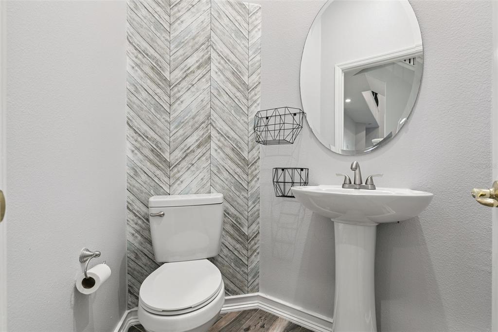 Additional highlights include a laundry room with utility sink, a powder room for guests, and wrought iron fencing for added style and security.