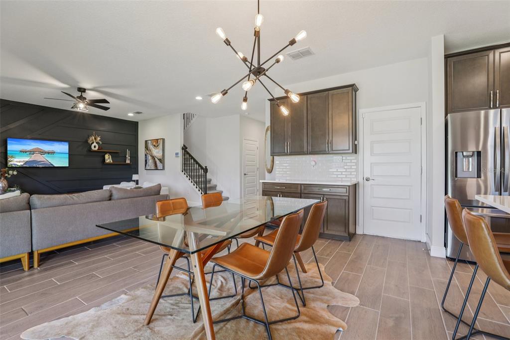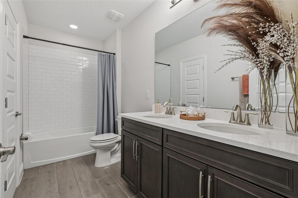 Welcome to the beautiful community of Waterleigh in Winter Garden! This meticulously maintained home features 5 bedrooms, 4 bathrooms, and a second floor laundry and bonus/game room. This thoughtfully designed open-concept home offers functionality and space for all. The spacious foyer invites you into the great room filled with natural light and overlooks the pond. The kitchen features stainless steel appliances, quartz countertops, and a large island that overlooks the dining and living areas. There is also a bedroom on the first floor that can also be used as a private office. The staircase with iron railing leads you to the second floor which houses the primary suite that provides a relaxing retreat with a spa-like bathroom and generous walk-in closet and pond view, and three additional bedrooms and two baths (one of the bedrooms is an en-suite). The serene backyard with covered patio and view of the pond offers space for a future pool, and is perfect for outdoor dining, family gatherings, or simply enjoying Florida’s sunshine. This home boasts wood-look tile on the first floor, upgraded lighting and ceiling fans, decorator touches and wainscoting, and lots of storage. Residents of Waterleigh enjoy resort-style amenities, including two clubhouses, pools, fitness centers, tennis and volleyball courts, playgrounds, walking trails, dog parks, and even a community beach with lake access. Lawn care is included in the HOA for true low-maintenance living. Conveniently located near Disney, Horizon West shopping and dining, top-rated schools, and major highways, this home offers the perfect balance of luxury and practicality in one of Winter Garden’s most sought-after neighborhoods.