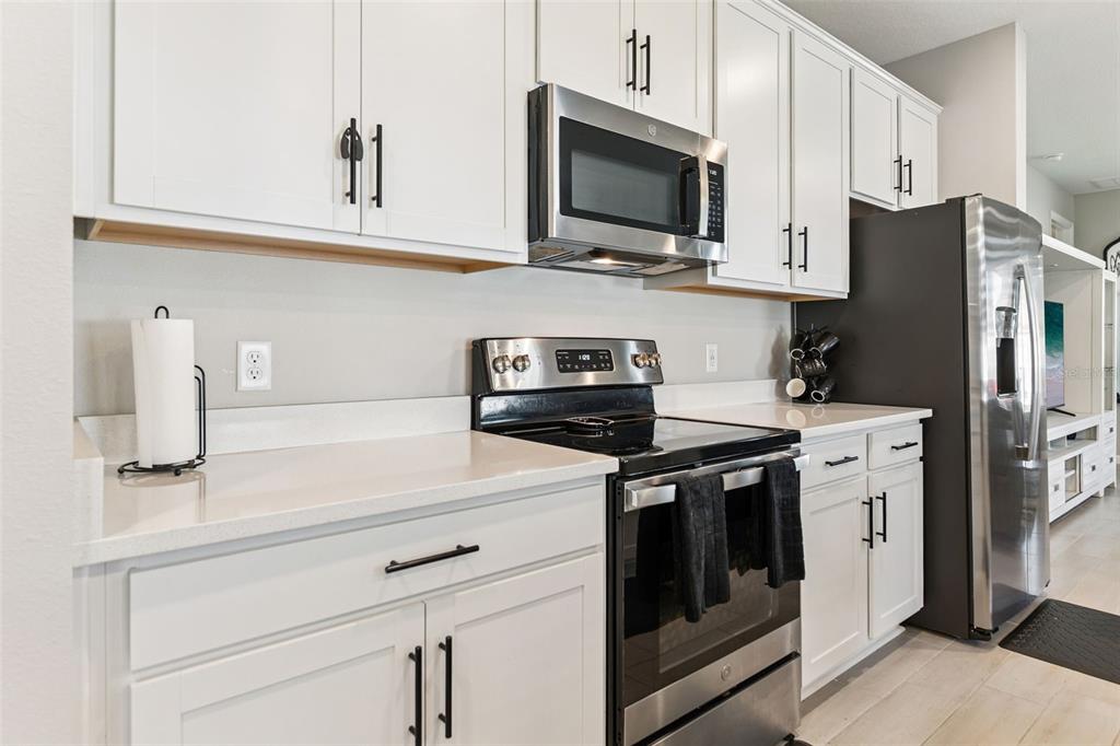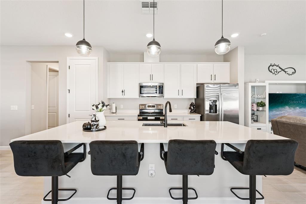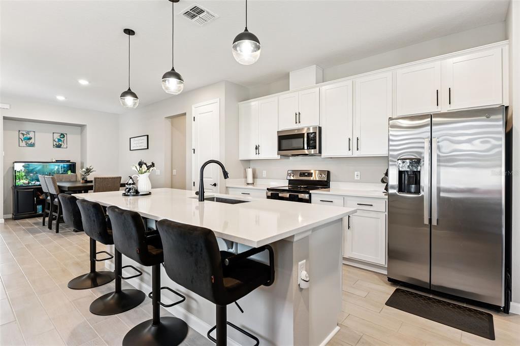 Practically Brand New Home For Sale in Haines City, sitting on almost a quarter-acre corner lot already fenced in. Previously built by Richmond American in 2023 and features 9’4″ ceilings throughout, 8-foot doors, wood look tile floors, quartz countertops, 42-inch kitchen cabinets with crown molding, professional grade zebra blinds in every room and window including bathrooms, 6″ gutters, a screened-in lanai, a fully fenced yard, plus an upgraded 8-zone sprinkler system covering every inch of the lawn. Well-maintained cozy floor plan with secluded primary suite. Conveniently located in the Seasons at Forest Creek neighborhood, so only 10 mins to Publix, Wal-Mart, Lowes, etc., 20 mins to Advent Health, and only 25 mins to the I-4. This is currently one of the best deals right now, plus you can use your FHA, VA, or USDA loan (100% Financing). Furniture is also available for sale with the home as a separate expense, but great opportunity to purchase and move right in! Full Video tour available upon request, or contact us now to schedule a private tour.