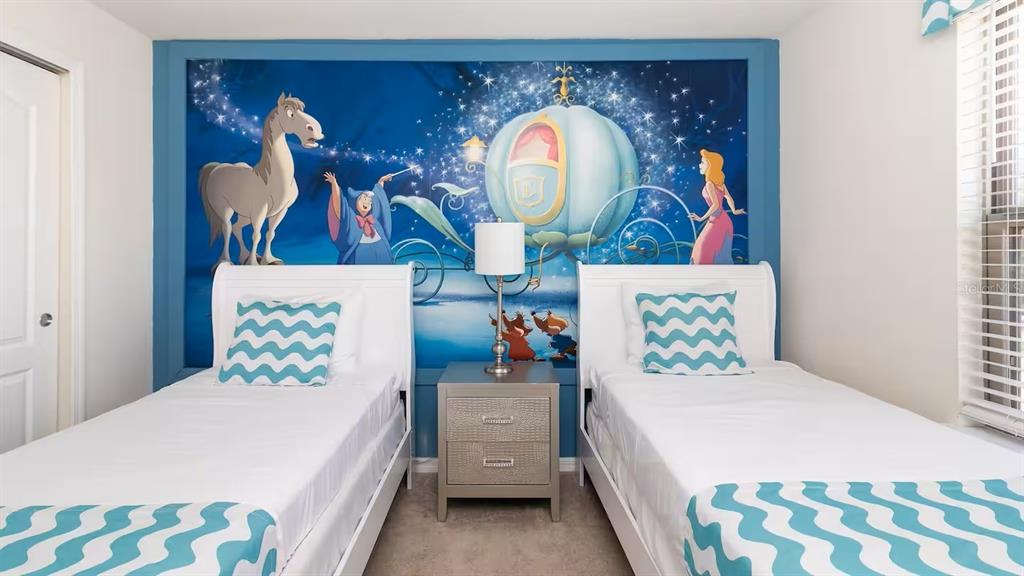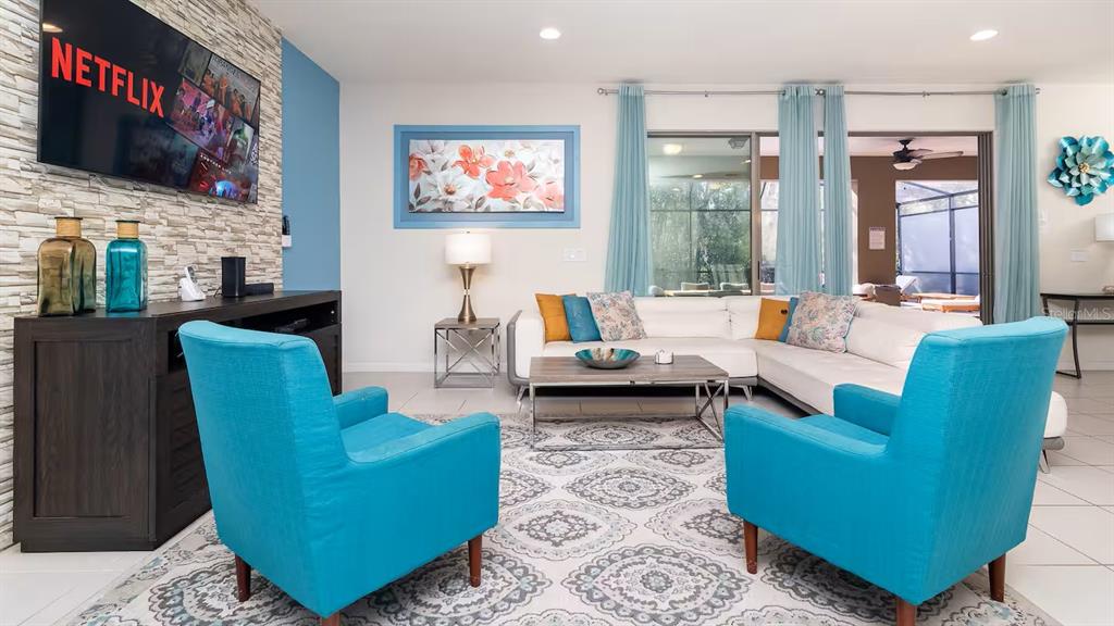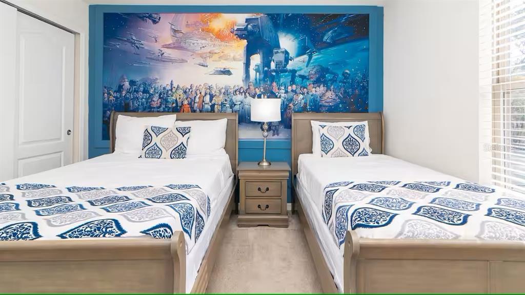 Designed for functionality and comfort, the open-concept floor plan features multiple living areas, a large upstairs loft/game room, and a modern kitchen with granite countertops, stainless steel appliances, and ample seating. The home includes themed bedrooms, generous sleeping capacity, and stylish furnishings throughout making it highly appealing on rental platforms like Airbnb and Vrbo. Enjoy a private screened-in pool and spa, complete with a covered lanai and outdoor dining area—perfect for relaxing or entertaining after a day at the parks. Whether hosting guests or enjoying it personally, this outdoor space adds major rental appeal. Windsor at Westside offers resort-style