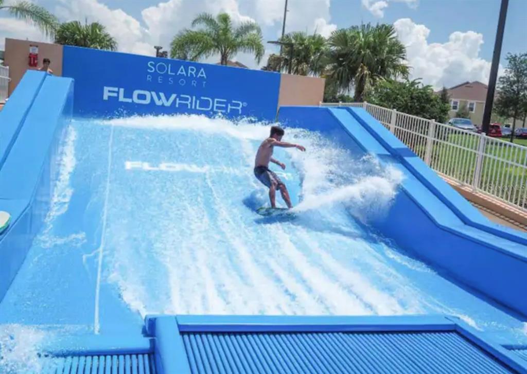 As part of Solara Resort, homeowners and guests have access to an array of exclusive amenities. The grand clubhouse features indoor and outdoor lounges, workstations, and a coffee bar, creating a welcoming communal space. The heated grand pool offers a zero-entry design, perfect for guests of all ages, while the FlowRider® Surf Simulator provides a unique entertainment experience. A state-of-the-art fitness center and outdoor fitness lawn cater to health-conscious travelers. Sports enthusiasts will appreciate the full-sized basketball court, sand volleyball court, and soccer field, adding to the recreational appeal. Dining options within the resort include an on-site bar and grill, a coffee bar, an ice cream parlor, and poolside cabanas for a relaxed atmosphere. Families will love the dedicated children’s playground and a tween/teen hangout center, ensuring entertainment for guests of all ages.