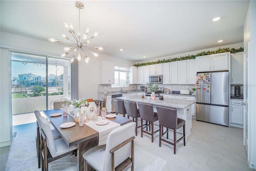 Stunning two-story home featuring 5 bedrooms and 3 full baths with a bright, open-concept layout. Enjoy tile flooring and 9-foot ceilings that enhance natural light and create a spacious, comfortable flow ideal for everyday living and entertaining. The well-appointed kitchen offers granite countertops, 36-inch upper cabinets, and Whirlpool® stainless steel appliances, opening to the great room and dining area for effortless gatherings. A first-floor flex room/den adds versatility, perfect for a home office or guest space. Upstairs, a generous loft provides additional living area, along with a convenient second-floor laundry room. The primary suite features a walk-in closet and a private bath with a walk-in shower, offering a relaxing retreat. Situated in a desirable community near schools, shopping, and dining, this home combines style, functionality, and location. Schedule your private showing today.