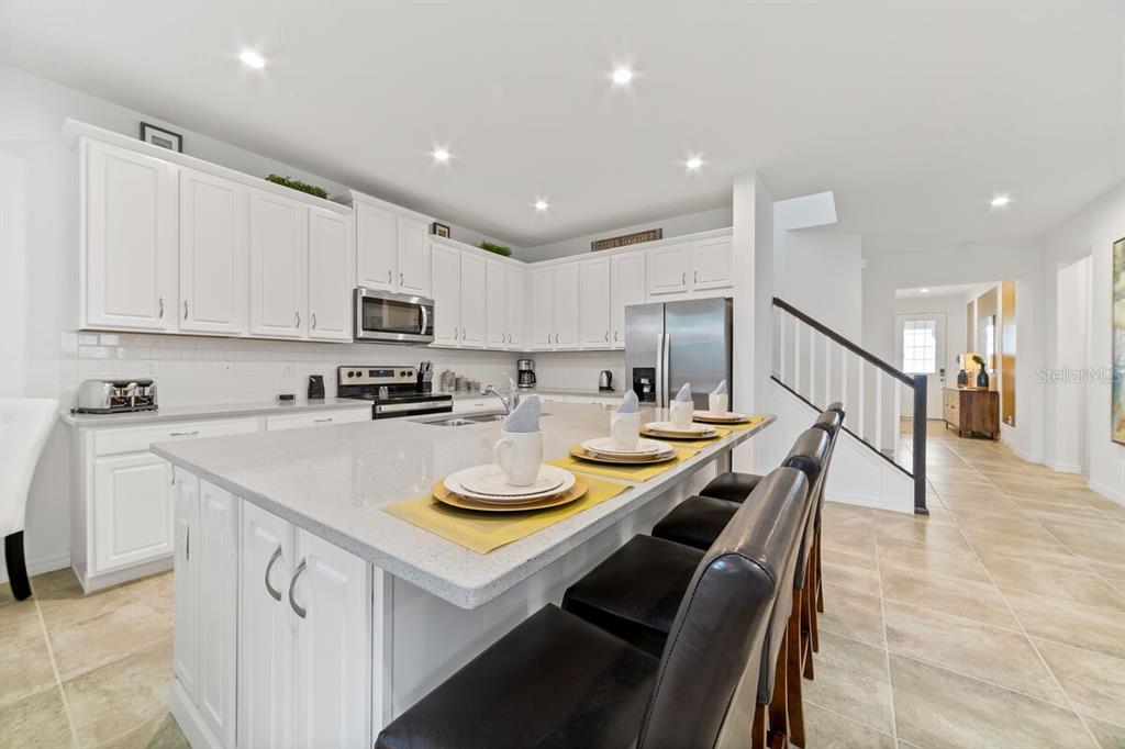 Beautiful, Spacious 9 bedroom Vacation Pool and spa Home in one of the Disney Corridors Premier Rental Communities. Professionally Furnished, Corner lot with with large pool deck with sun coverage. This home boasts the largest floor plan in the community, providing unmatched space and comfort for large families, guests, or vacationers. Whether you’re hosting unforgettable gatherings or simply unwinding, this home checks every box. Professionally furnished with features to impress Gourmet kitchen with **42” wood cabinetry**, **stone countertops**, and **stainless steel appliances** * Open-concept layout that flows seamlessly through the **kitchen, dining, and living areas** * Game and media areas, a **dedicated movie room** Spacious private ensuite with **direct pool access**, **spa-style soaking tub**, and a **walk-in shower** * **Laundry/mudroom** equipped with washer and dryer for everyday convenience Outdoor Paradise: -Heated pool and spa with brick paver deck -Covered lanai for shaded lounging -3-panel sliding doors from the living room create the ultimate indoor/outdoor living experience Prime Location with World-Class Amenities: