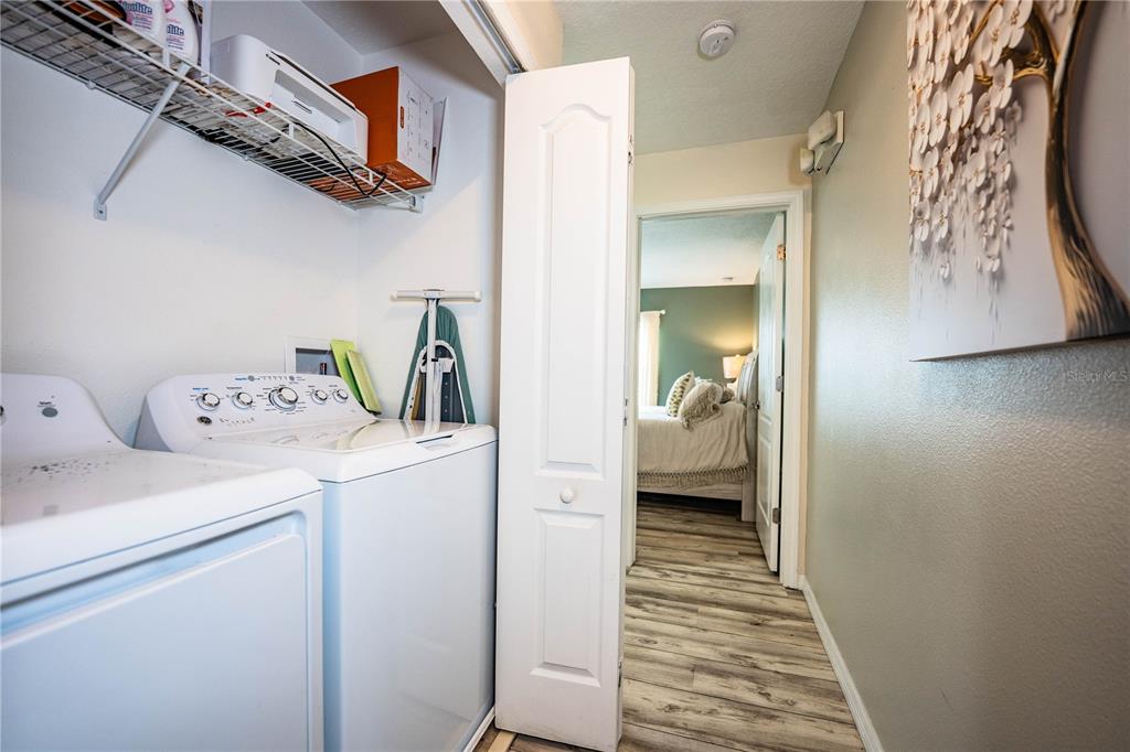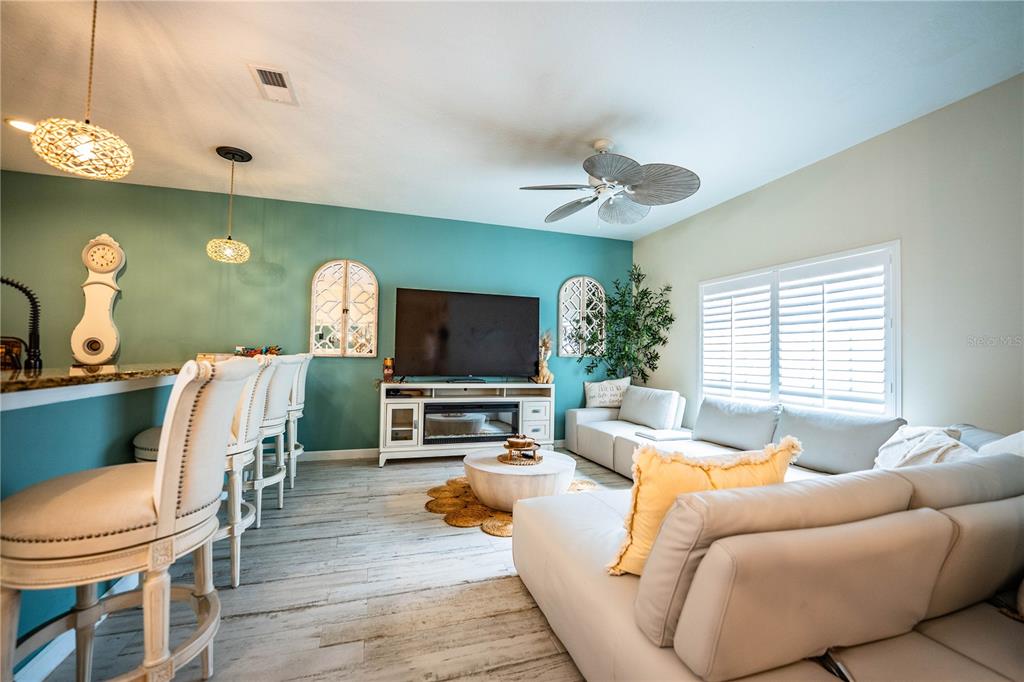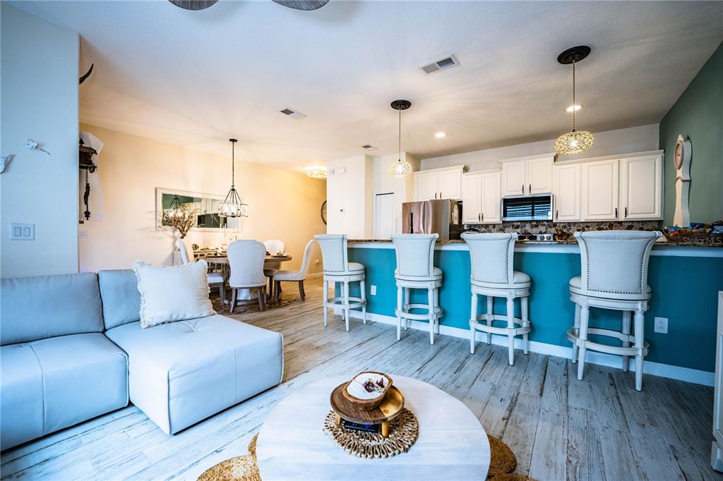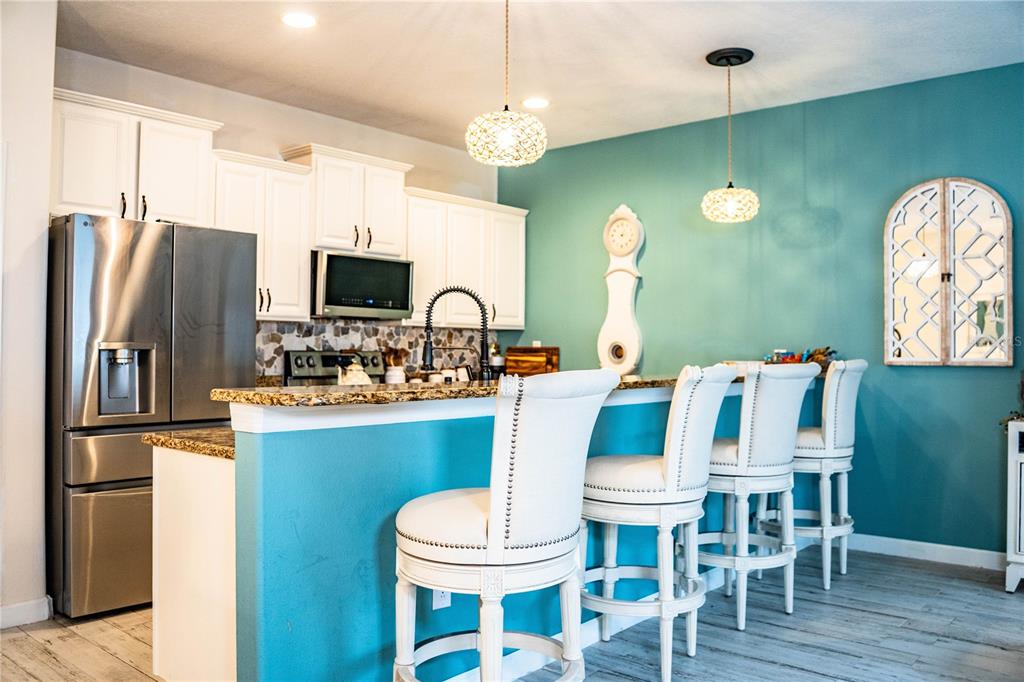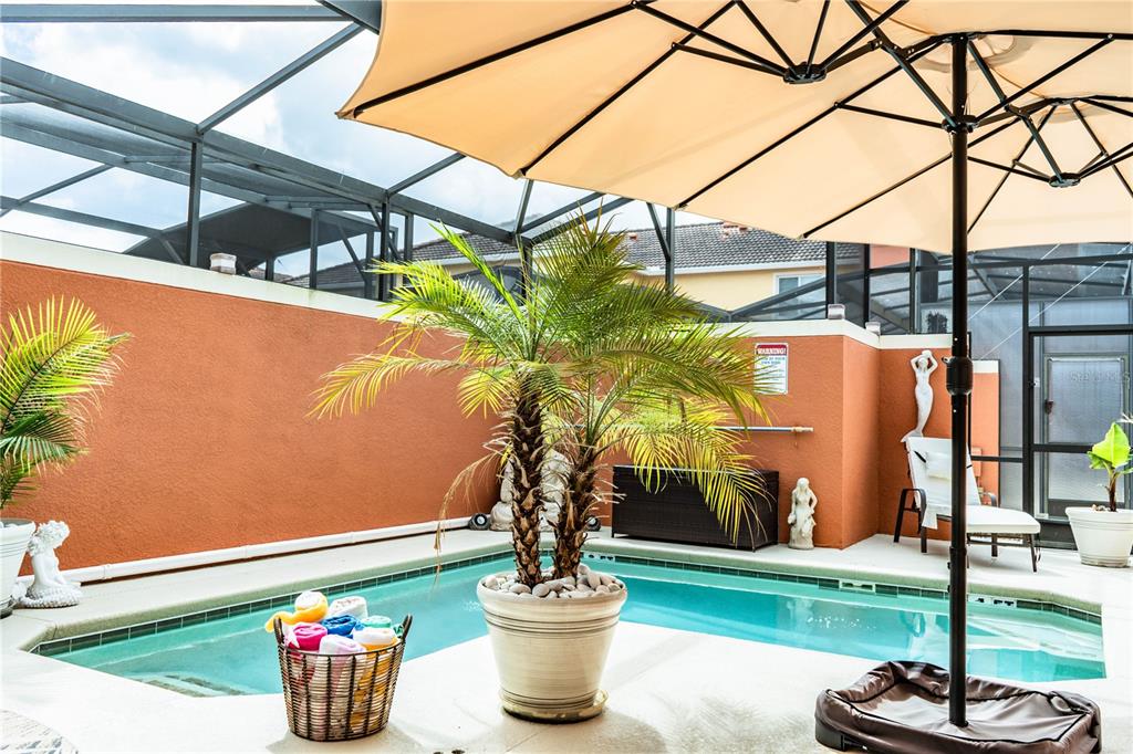 The home features a private screened-in lanai with its own heated pool. Perfect for relaxing or entertaining! Inside, the kitchen is equipped with granite countertops and stainless steel appliances, offering both style and functionality. The open layout provides comfortable living space for both everyday use and guest stays.
