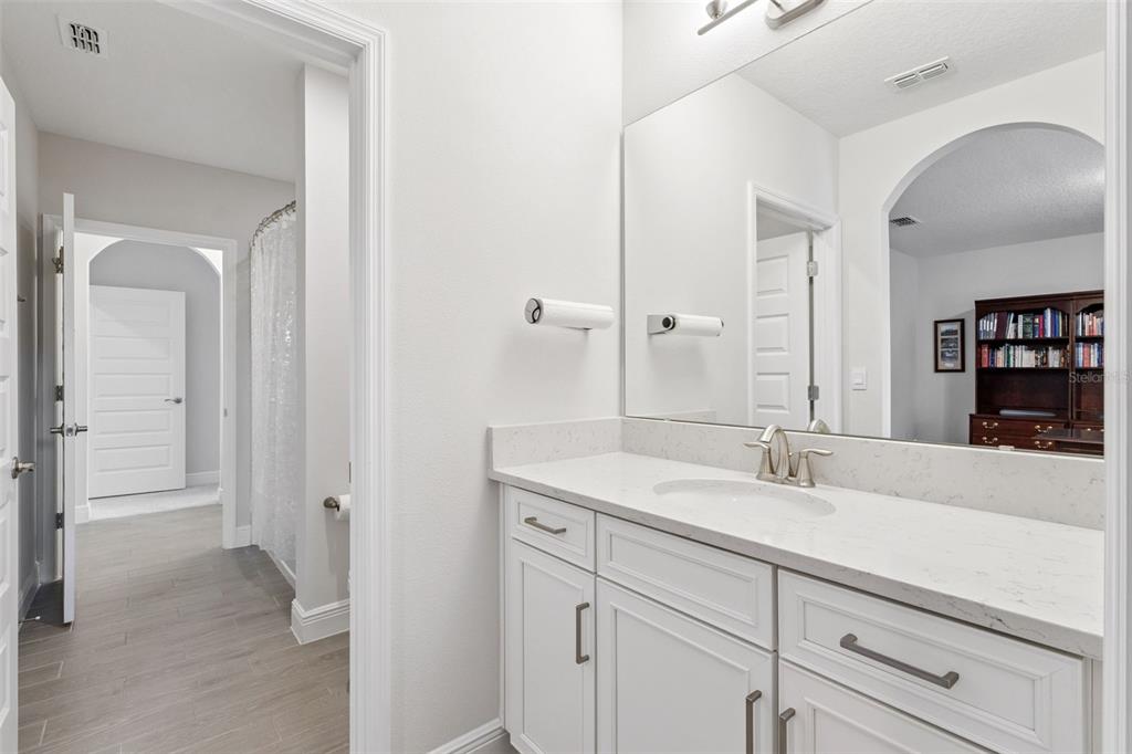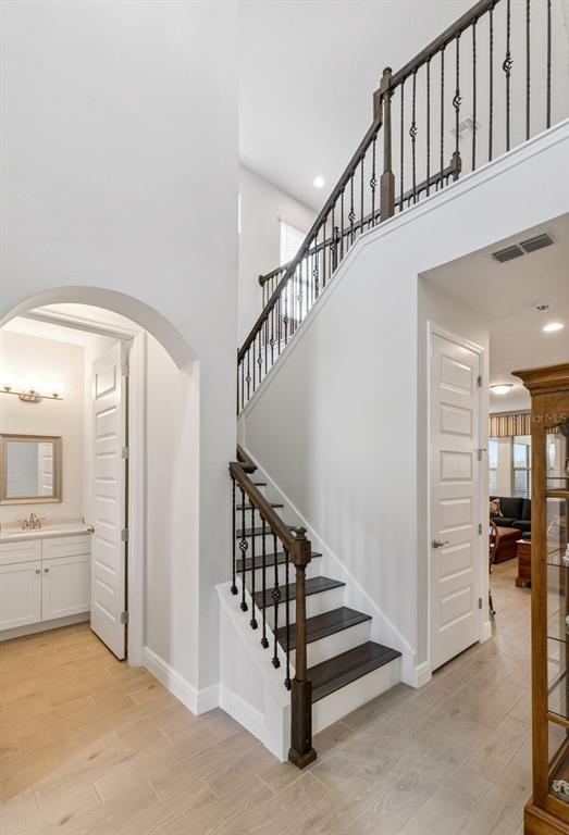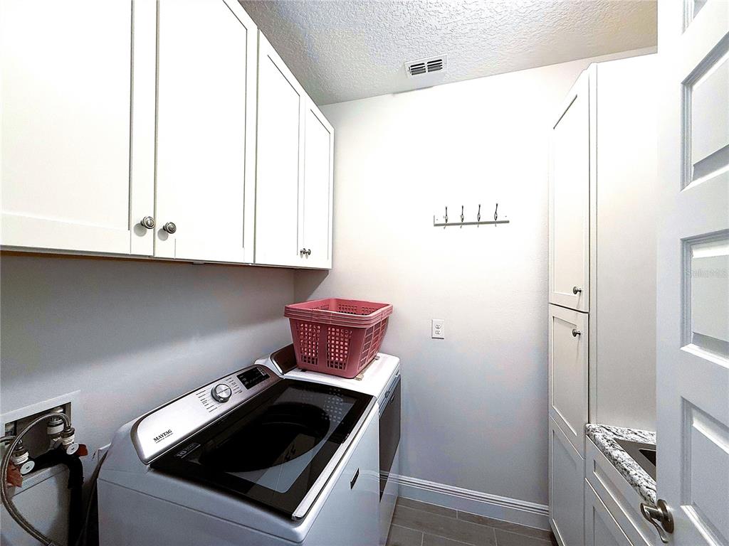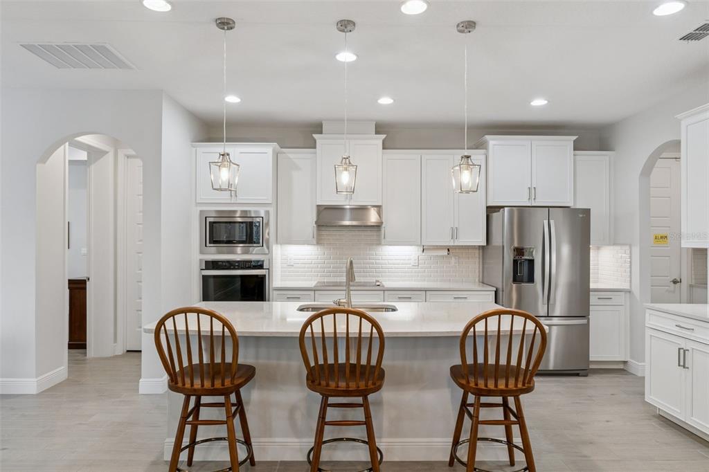 LUXURY POOL HOME on PREMIUM LAKE FRONT LOT! Unique Opportunity to Enjoy an Outdoor PARADISE with STUNNING LAKE, CONSERVATION & SUNSET Views! The HOA is Allowing Docks on these Special Lots – Relax, Fish or Kayak! Most POPULAR Floor Plan – North Haven – has 5 Bedrooms, 3.5 Baths, Gourmet Kitchen, First Floor Primary Suite, TONS OF STORAGE, Tile Roof and 3 Car Garage. The OUTDOOR LIVING Space is SPECTACULAR – $200,000 to Duplicate! Generous COVERED Patio PLUS additional Covered CABANA SPACE is 34 FEET LONG! DELUXE Heated POOL and SPA with Upgraded Pavers, PANORAMIC SCREEN, Large SUN SHELF with Bubblers, PEBBLETEC Surface, Mosaic Accent Tile, SALT SYSTEM, LED Lights and FULLY AUTOMATED SYSTEM for Chemicals! PLUS Ledge Loungers and Basketball Hoop are Included! This MODEL PERFECT Home has a GOURMET KITCHEN with 42” Cabinets, Large Island with QUARTZ COUNTERS, Upgraded Subway Tile Backsplash, NEW PENDANT LIGHTS, Large SINGLE SINK, SS APPLIANCES including BUILT-IN OVEN and COOK TOP with VENT HOOD and FRENCH DOOR Refrigerator. ! Large Pantry and Butler Pantry add Storage! OPEN FLOOR PLAN with Views of the Patio, Pool and LAKE from Family Room and Casual Dining! First Floor Primary Suite with CUSTOM CLOSET has a Bath that Features DOUBLE Vanities, OVERSIZED SHOWER and Garden Tub. FLEX Space can be Dining Room, Office or Living Room. Convenient Powder Bath and FULLY Remodeled Laundry Room with Cabinetry, Utility Sink and RO Water System Complete the First Floor. Entire First Floor has WOOD PLANK Porcelain Tile, 8’ Doors and 5 ¼ Molding. Stairs are Engineered Wood with Wrought Iron Spindles. The HUGE LOFT separates the Upstairs. ALL 4 Bedrooms have WALK IN Closets – but Bedroom 3 has a CUSTOM CLOSET. Bedrooms 2 and 3 share Full Bath 2 and Bedrooms 4 and 5 Share a Jack-and-Jill Bathroom. These Owners Thought of Everything! Paver Path to Store Trash Bins, Gutters with LEAF GUARD, Salt Free Water Filtration System, Custom Valances, Interior Painted with QUALITY paint, AC with Ultraviolet Sanitizing, Upgraded PRIVACY Landscaping, Garage with EPOXY FLOOR, Overhead Storage Racks and CUSTOM Storage System! Waterleigh is the PREMIER LIFESTYLE COMMUNITY with 4 Resort Style Pools, 3 Clubhouses with Fitness Centers, Walking Trails, Sand Volleyball, Dog Park, Fishing and Observation Pier, Tennis, Pickleball, Playgrounds and more! HOA Does all Yard Maintenance. All this zoned for NEW Atwater Bay Elementary, Water Spring Middle School and Horizon High School! Close to Disney, Shopping, Dining, 429, I-4, 417 and a NEW PUBLIX!