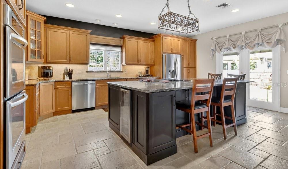 Chef’s Dream. Double Ovens, Microwave, Wine Cooler, Pot Rack, Newer Refrigerator and Dishwasher, 42″ Cabinets, including