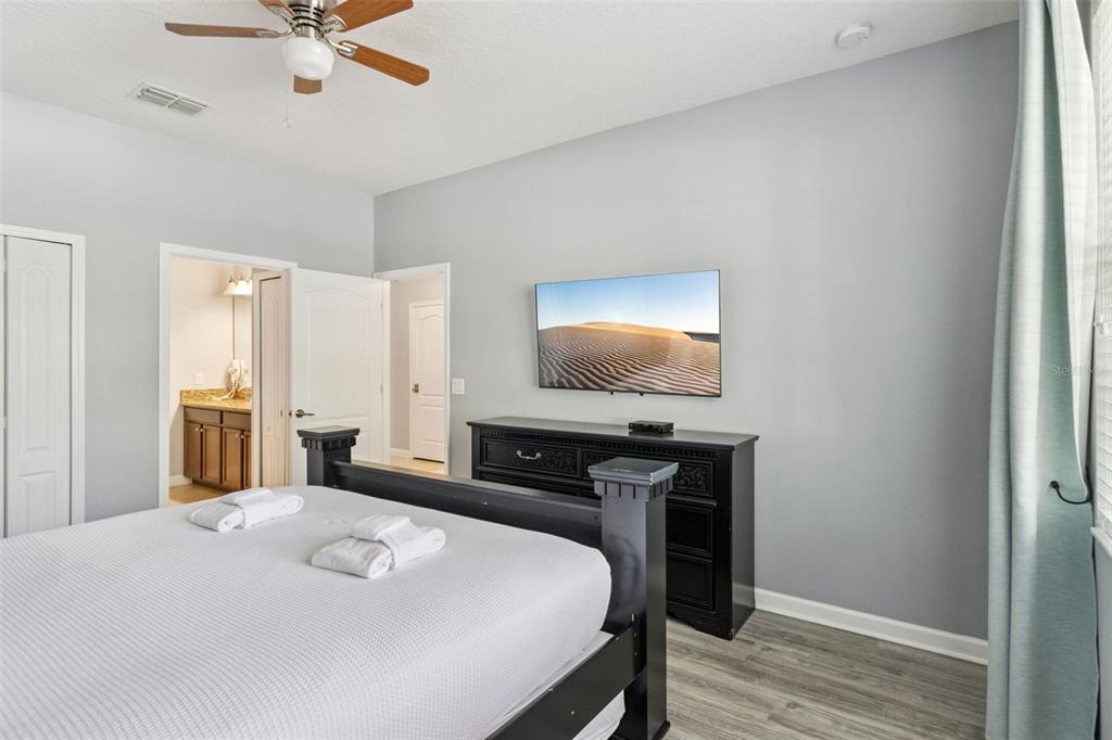 Located in the highly sought-after ChampionsGate Resort, guests enjoy access to world-class amenities including a waterpark, lazy river, waterslides, waterfalls, spa, splash pad, fitness center, movie theater, game room, tiki bar, grill, and private cabanas. Even better, this home is just a short 0.04-mile walk to the main clubhouse and amenity center.