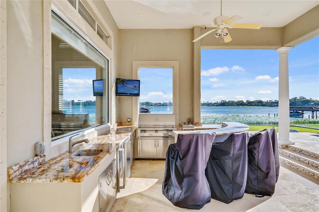 WOW! SPECTACULAR LAKEFRONT WITH AMAZING SUNSET VIEW. 6-7 BEDROOM 6 FULL BATH HOME PLUS 2 HALF BATHS, (EACH BEDROOM HAS IT’S OWN BATH) BOAT DOCK. EVERYTHING UPSCALE. CUSTOM BUILDER REMODELED THE INTERIOR WITH ADDITIONAL NEW FEATURES SPENDING OVER $1.4 MILLION CLOSE TO 6800 SQ. FT. / 8275. 24 HOUR GATED AND GUARDED COMMUNITY. Interior walls stripped and re-done including electrical, plumbing, floors, air conditioning, automated lighting systems and security surveillance cameras in and out. EXTENDED BONUS ROOM UPSTAIRS. All modern upscale craftmanship and rich details, state of the art, completed 2018. Must see Master bathroom with 2 STORY HIS & HER CLOSET. MARBLE SLAB WALLS (NO GROUT), OVERSIZED MASTER SITTING AREA. Molding and Niches throughout. All living areas have 34×34 inch MARBLE TILE FLOORS. This home includes a GOURMET KITCHEN with updated Island, exotic GRANITE COUNTERTOPS and MARBLE Floors. All steel appliances, double oven, GAS STOVE, pantry, and elegant cabinets. HUGE FAMILY ROOM with AMAZING LAKE VIEWS! Master, Office, and additional 3 Bedrooms downstairs also an Entertainment Room with WOOD FLOORS, updated wall cabinets, molding, and plantation shutters. ALL TV AND DVD MUSIC SYSTEM INCLUDED. SURVELLIANCE CAMERAS IN AND OUT. SOARING CEILINGS AND BREATHTAKING VIEWS! Every room completed with CUSTOM CABINETRY, ELEGANT FAMILY ROOM WITH MARBLE FIREPLACE, EXTRA LARGE OPEN LAKE VIEWS, and lighter paint color. 2 BEDROOMS UPSTAIRS COMBINED AS 2ND MASTER / INLAW SUITE WITH SMALL REFRIGERATOR, MICROWAVE AND SINK. 42×12 Bonus Room/Theater Room/ 7th Bedroom. STUNNING EXTRA LARGE GAME ROOM ON FIRST FLOOR WITH BAR SET UP, LAKE VIEWS & WOOD FLOORS. Indoor Laundry Room with Storage. 3 Car oversized side garage entry with CIRCULAR DRIVE. ADDITIONAL 2-3 CARS PARKING SPACES WITH FENCE GATE. Square footage provided by original builder plans. Extra Large RAISED BACK YARD with SEA WALL AND LANDSCAPE LIGHTING. DOCK RECENTLY UPDATED $50K, NEW A/C $20K. NEW LANDSCAPING. POOL & NEWER ELECTRIC HEATER FOR POOL + GAS HEATED SPA + KIDDY POOL. TRAVERTINE DECK AND GRANITE SUMMER KITCHEN. ENTIRE POOL AREA WAS DEMOLISHED AND TOTALLY REBUILT. SEA WALL and ONE OF A KIND SEE THROUGH GLASS FENCED YARD, NO OTHER HOME IN THIS AREA HAS A GLASS FENCE (SEE THROUGH YARD AND LAKE.) IRON FENCE ON BOTH SIDES. LOW WATER BILLS water pump from lake for irrigation. Mosquito repellent in back for pool and porch. Orlando’s most exclusive 24 Hour Gated and Guarded Community with boat dock, small park, playground, tennis, and basketball courts. Estates at Phillips Landing – Dr. Phillips area, with the best of everything! THIS UNIQUE INTERIOR DESIGNED HOME is comparable to no other home in the area, took many years to complete update with County and HOA Permit. USED AS A SECOND HOME, AND MAINTAINED BY CARETAKERS. Close to “Restaurant Row”, 25 min. to International Airport, Disney World and EPCOT. Close to Sea World, Universal Studios, Malls, Schools, Library, Trader Joes, Whole Foods & Fresh Market. ENJOY THE SUNSET. ENTERTAIN FAMILY & FRIENDS ON THE LARGEST OPEN PORCH ON LAKEFRONT! YOU MUST SEE THIS HOME TO BELIEVE IT! MUST SHOW PROOF OF FUNDS.