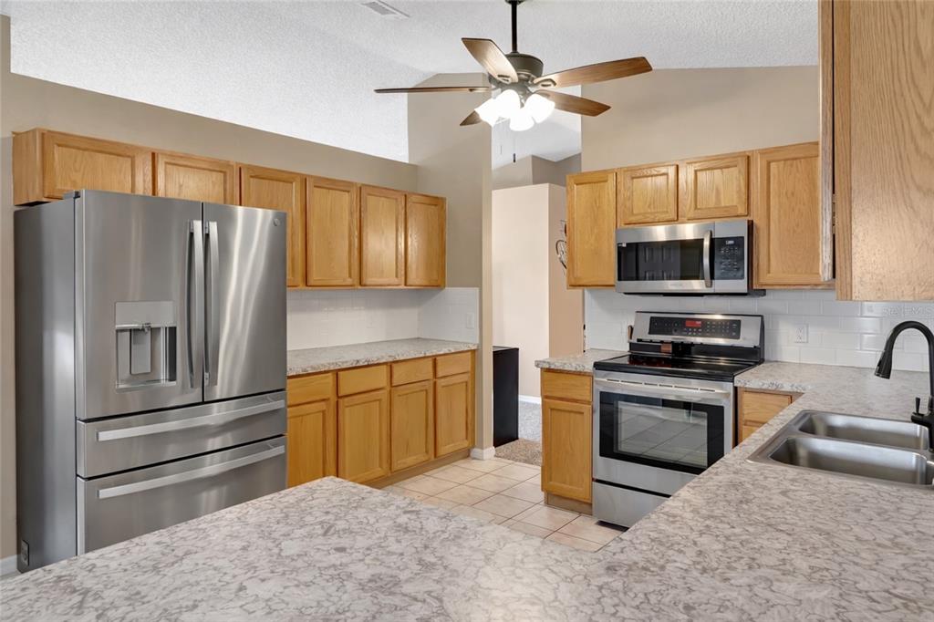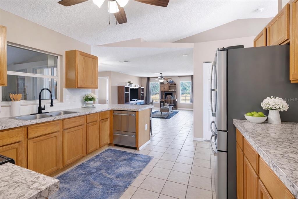 The kitchen has been thoughtfully upgraded with enhanced appliances designed for modern living. The upgraded refrigerator features a customizable middle drawer for flexible freezer or refrigerator storage, and the two-zone drawer dishwasher makes cleaning up effortless and efficient. Whether you’re hosting holidays or just enjoying a quiet night in, this kitchen blends technology with functionality.