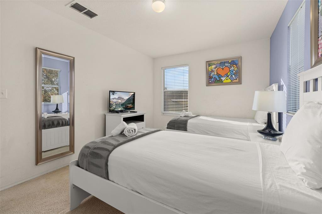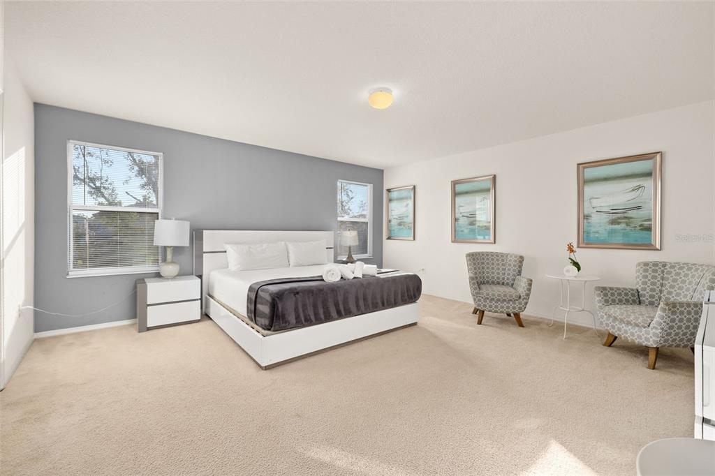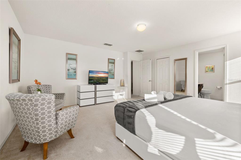 Upstairs, you’ll find four spacious bedrooms and three full bathrooms, including an additional bathroom that was added to enhance convenience. The primary suite offers a king-size bed and a private en-suite bathroom.